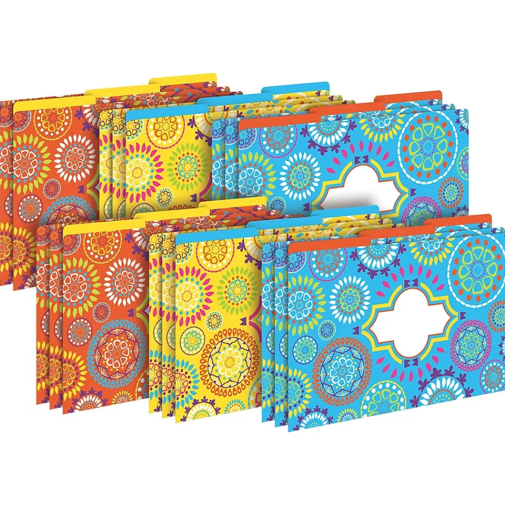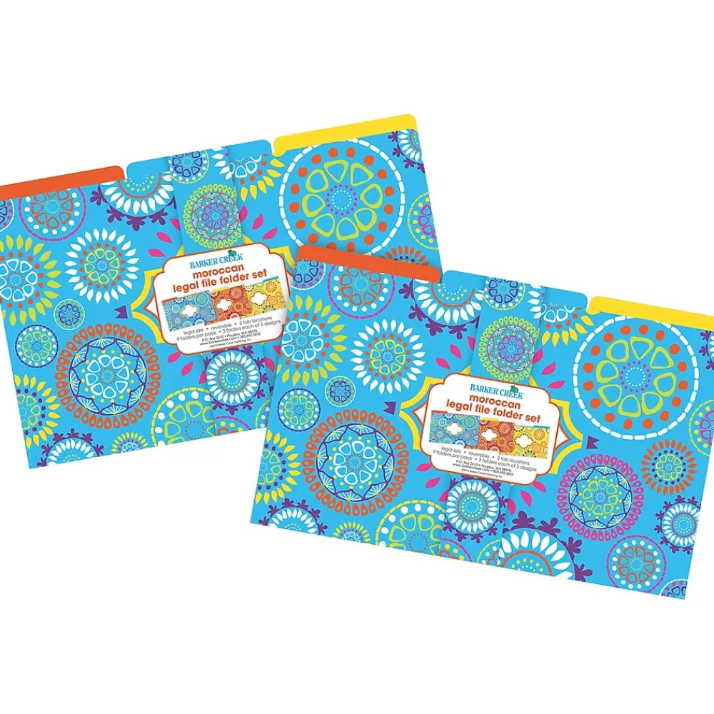 Barker Creek’s Moroccan legal-sized fashion file folders are raising the style bar for those of us who use legal folders at work, school, and home. Each set includes 18 beautifully designed legal-sized file folders – six folders each of three on-trend designs. The folders are 1/3 cut and printed on durable 12 pt. stock. Fully reversible, each folder has a colorful design on one side and a vibrant, solid color on the reverse side – perfect for color-coding your files, making file folder games and lap books. The possibilities are limited only by your imagination! Coordinating products available: Search Barker Creek Moroccan.