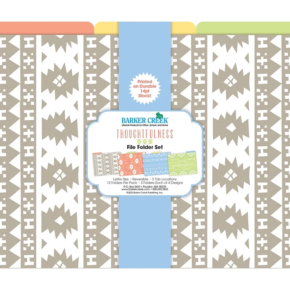 File Folders|Barker Creek Thoughtfulness File Folder, 1/3-Cut Tab, Letter Size, Assorted, 12/Pack (2016)