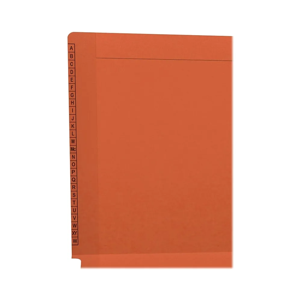 Store, categorize, and access documents efficiently with this Medical Arts Press Kardex letter-size end tab folder with A-Z scale printed on the left end tab. The folder is made of 11 pt. orange stock and comes with a reinforced top.