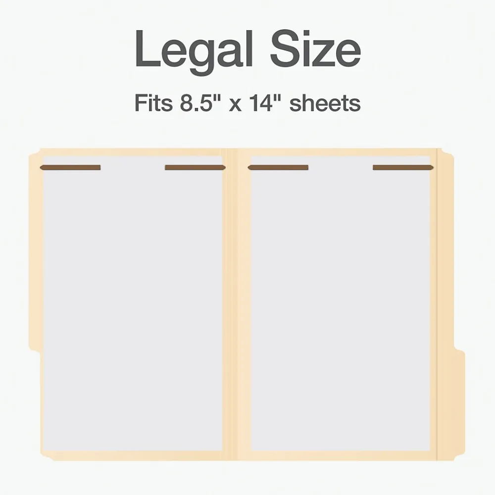 These Pendaflex Fastener Folders have thick, reinforced tabs that will better withstand wear and tear. Two embedded fasteners keep paperwork ordered and in place. The 1/3 cut tabs are guide height for better visibility and come in 3 different positions (left, right, center), so you can see all of your labeled tabs easily. Each folder fits legal-sized papers and is scored along the bottom for 3/4 inch expansion. Box of 50 manila fastener folders.