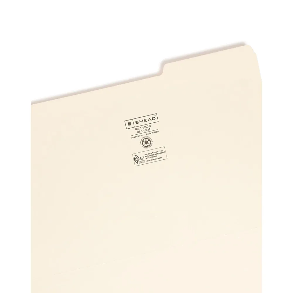 File Folders|Smead ® File Folder, Reinforced 1/3-Cut Tab Right Position, Legal Size, Manila, 100/Box (15337)