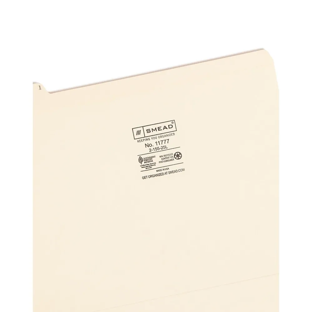Get documents organized by sorting them into these letter-size alphabetic manila indexed file folders. The 11-point manila stock construction protects contents from everyday wear and tear, while the assorted tab positions make these folders simple to browse. This set of Smead letter-size indexed file folders features reinforced 1/5-cut tabs with bold preprinted letters for easy reading.