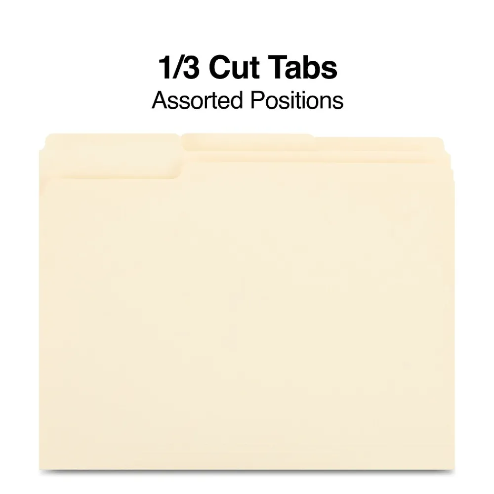 - Three 1/3-cut assorted-position top tabs offer ample space for labeling to keep your files organized