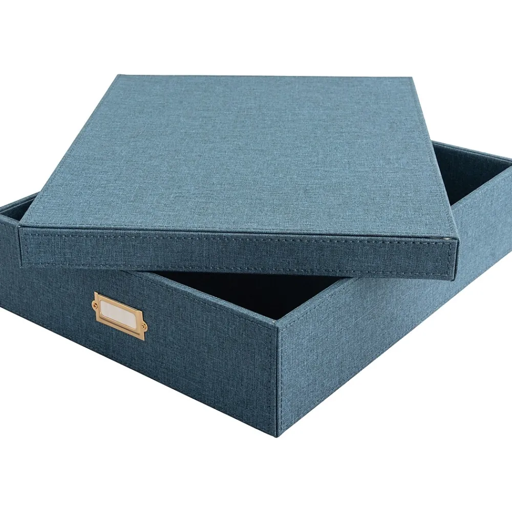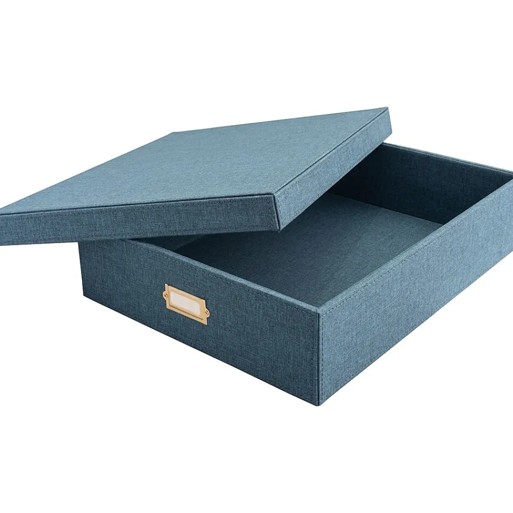 The Martha Steward stackable document box helps get your work productive and ordered. Great for use in the office, school, or home. Made of high-quality faux leather with linen texture in navy.