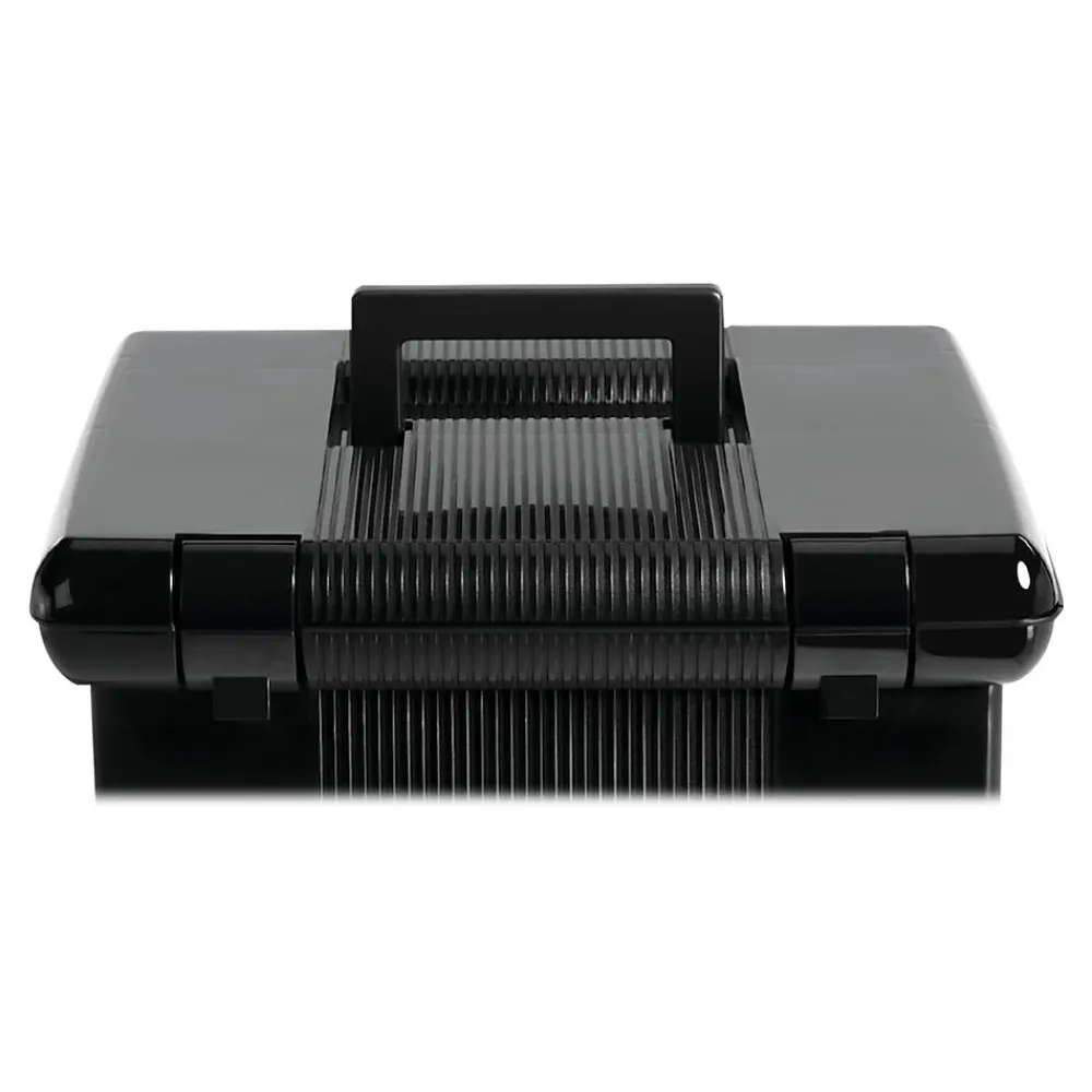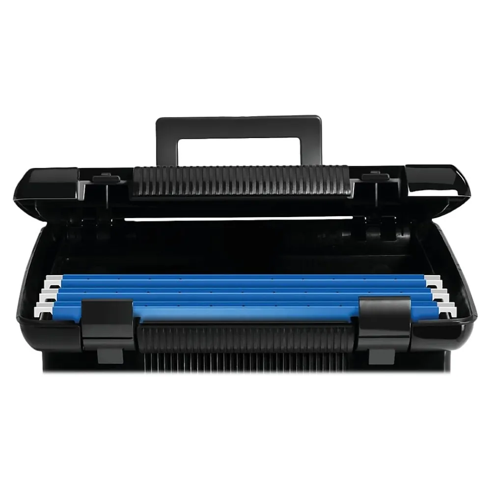 Store and organize documents in this portable file box. A convenient carrying handle makes this box easy to move, while the spacious interior offers ample space for up to 22 letter-size hanging file folders. The latch closure keeps the lid firmly closed to prevent items from getting lost. With durable plastic construction, this Pendaflex file box stands up to regular wear and tear.