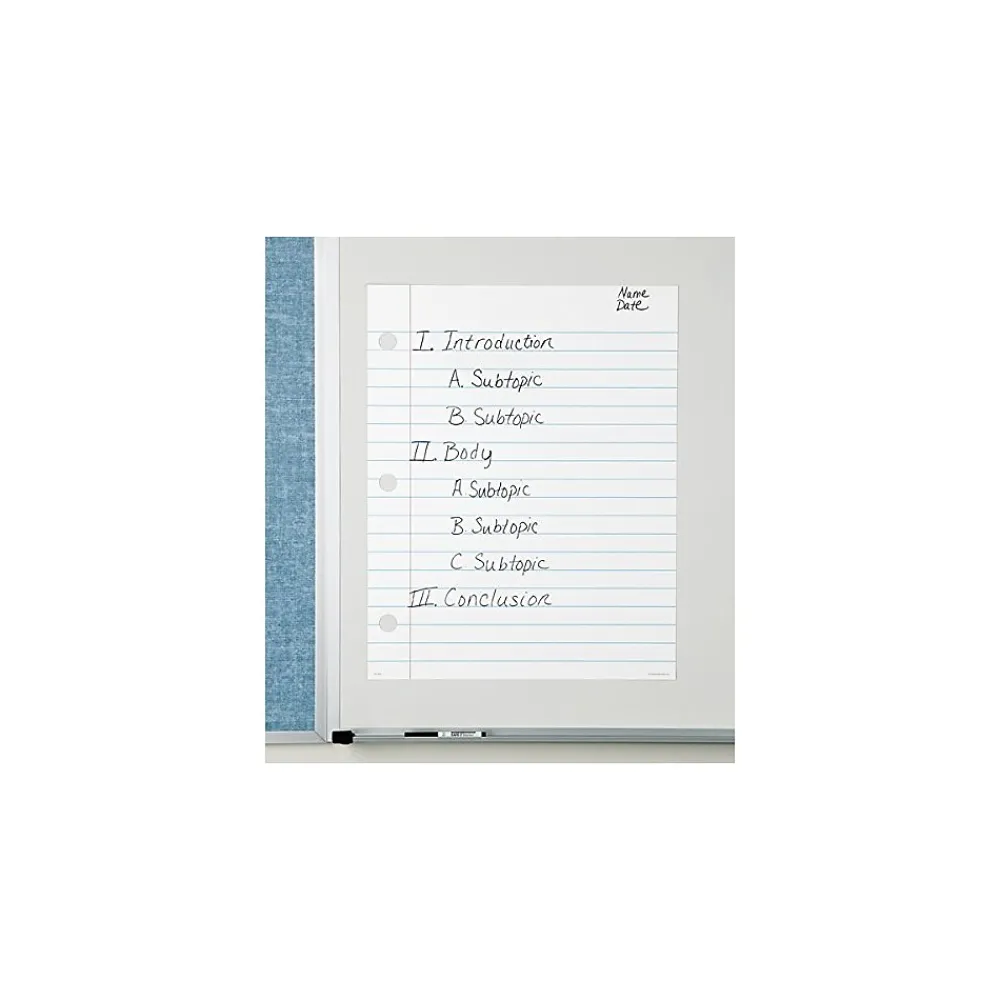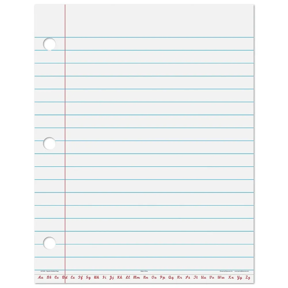 Learning Resources® Magnetic notebook paper has durable write on/wipe off surface that works with wet erase markers and measures 28″ x 22″. Notebook paper sticks firmly to magnetic boards and is used model sentences, letters or note takings.