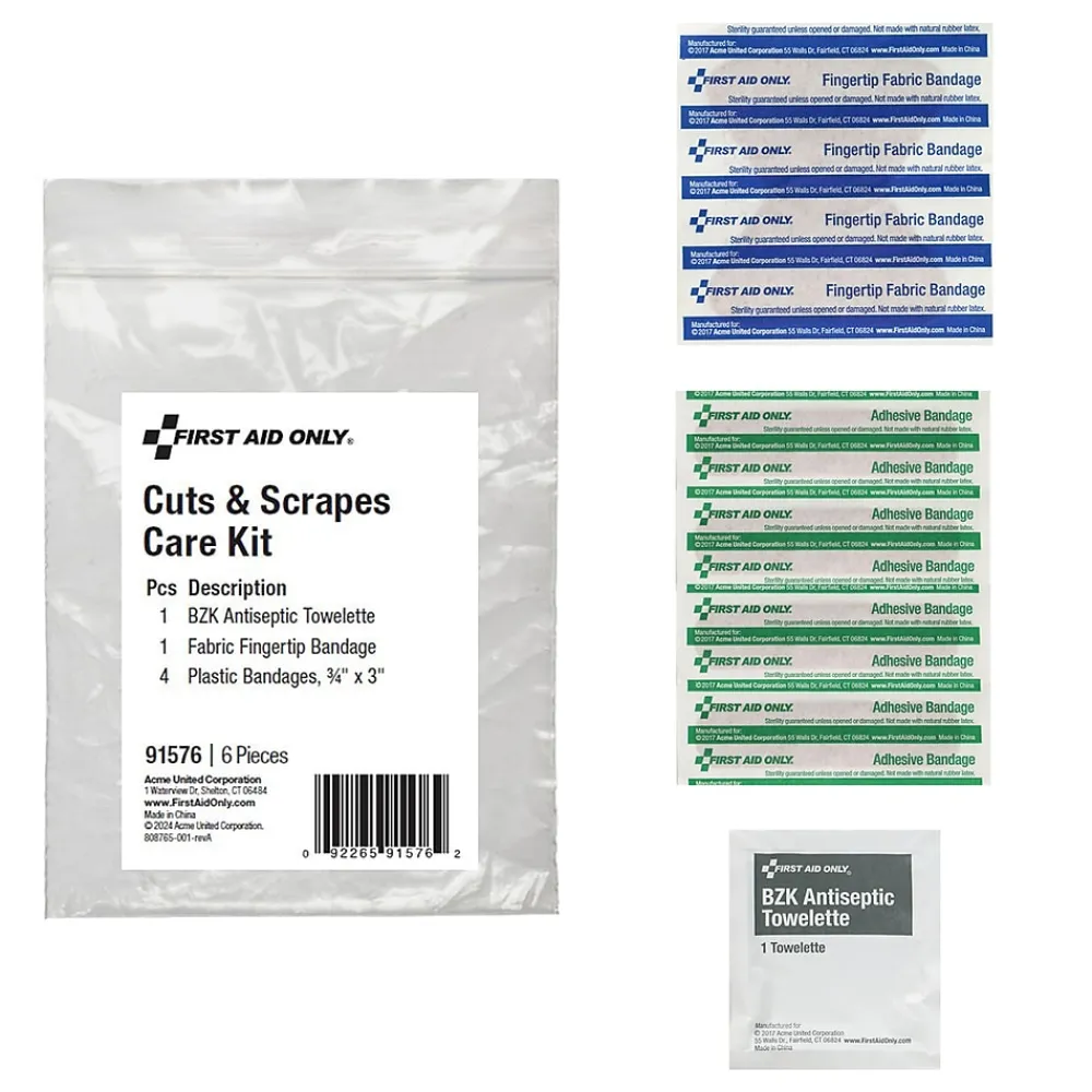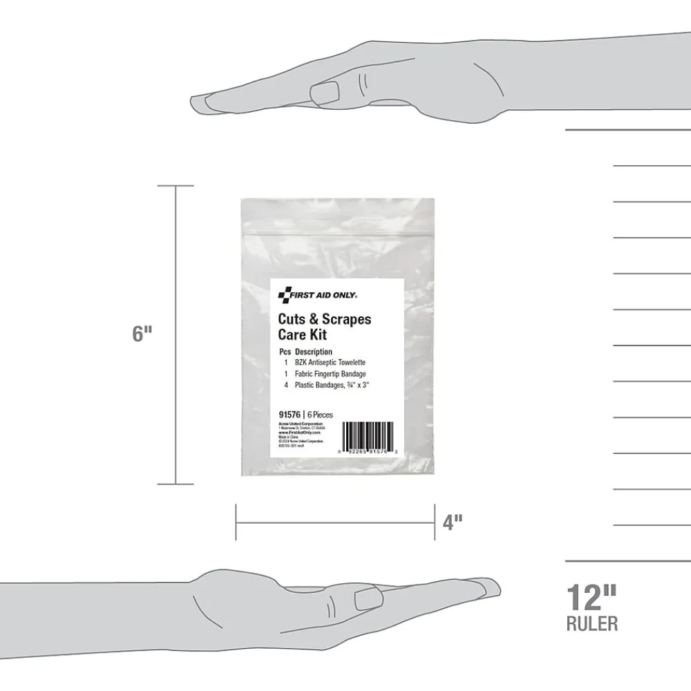 Handle cut and scrapes injuries with ease with this Cuts & Scraps Care Kit. Perfectly portioned to contain just what you need to treat minor cuts or scraps, the single use pack may be discarded after use. Refills the 91575 Care Kit or supplements existing first aid kits.