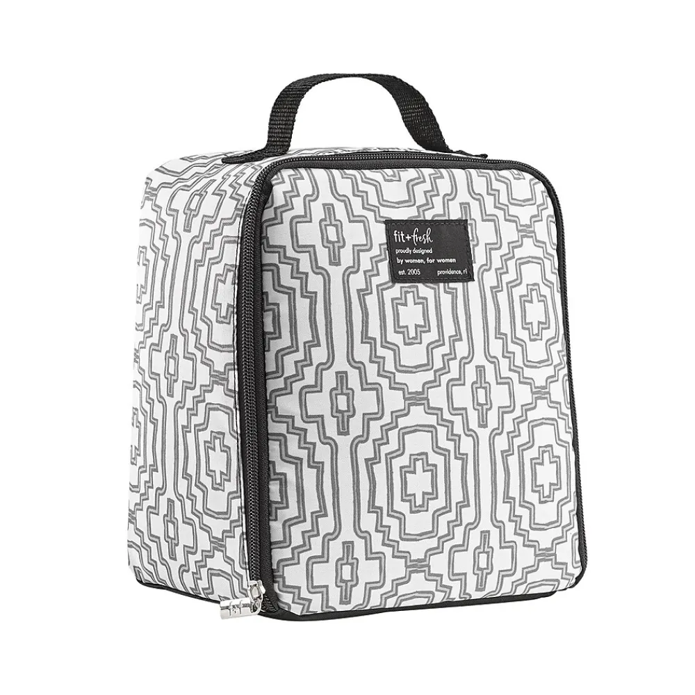This fashionable insulated Fit & Fresh lunch bag is perfect to take anywhere: work, school, picnics, and beyond. The comfortably woven grip and the reinforced zippered closures keep contents secure inside, while the wide openings make it easy for you to pack, unpack, and clean. With three-layered thermal insulation and an easy-to-clean PEVA liner, your lunch stays fresh for more than 12 hours.
