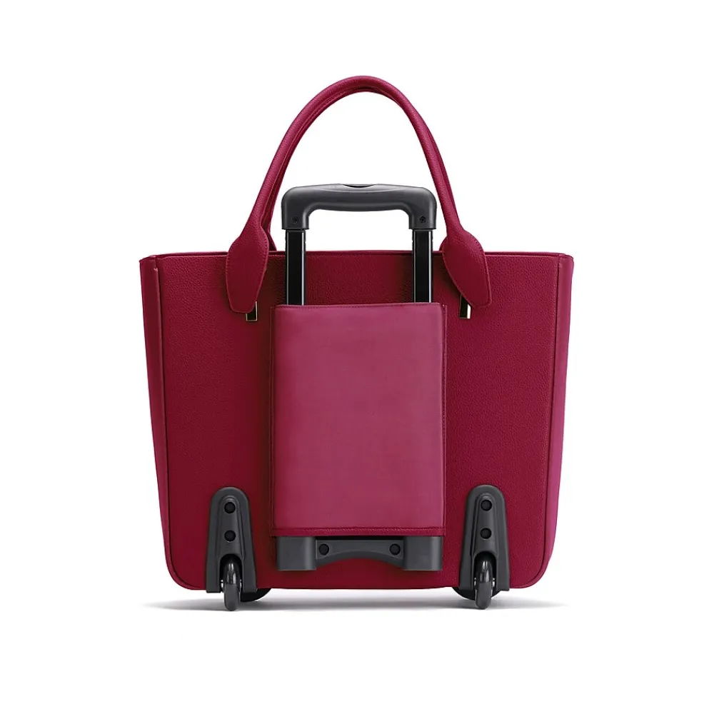 There’s no wonder why the Francine Collection Florence roller tote is in high demand. Francine Collection’s stylish and lightweight laptop roller tote wheels you through travel and work with fashionable ease. No matter your profession or destination, this burgundy laptop roller tote gives women the look of effortless, fashionable, and functional success, all with the traveling ease of wheels. Women want wheels. Francine Collection’s Florence laptop roller tote is your answer.