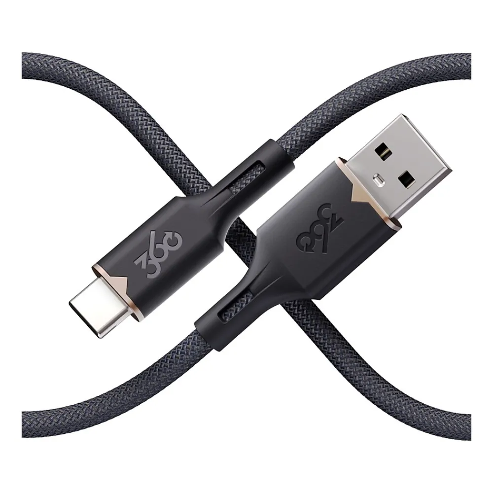 Bending where others break, this 360 Electrical Fluid USB Type-C to USB Type-A cable is tested to withstand over 30000 full 180-degree rotational bend cycles with a 7 oz. weight attached. The materials and construction are carefully designed to allow the cord to flow freely, avoiding kinks and reducing visual clutter. Each band of the cord weave consists of three pre-coiled bundles, which not only prevents fibers from getting caught and fraying but also imparts an incredibly clean, premium feel.