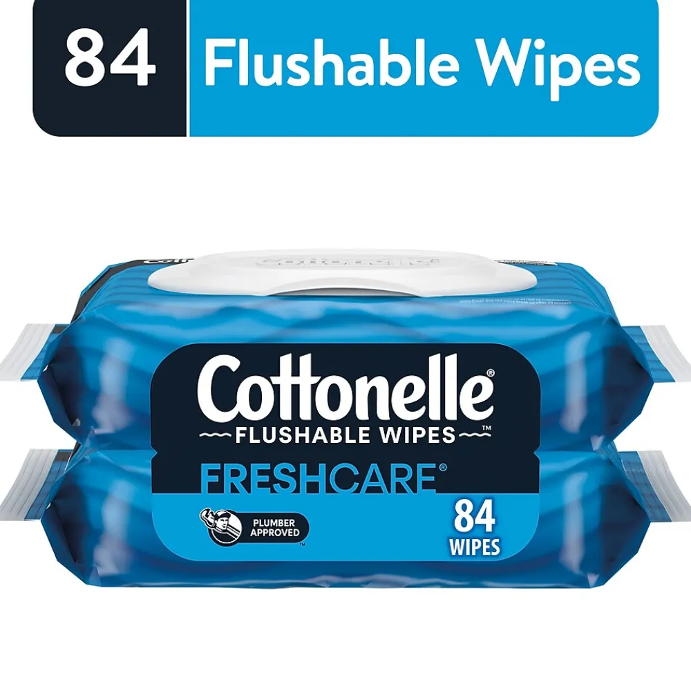 Cottonelle Flushable Wet Wipes are 100% flushable and are the only flushable wipes endorsed by a WasteWater Utility (JEA). This contains 2 flip-top packs of Cottonelle flushable wipes with 84 total wipes. Designed for toilets and tested with plumbers, Cottonelle flushable wipes begin breaking down immediately after flushing and are stored in resealable packs to preserve freshness and moisture. Ideal for everyday hygiene or potty training toddlers, Cottonelle Flushable Wet Wipes provide freshness you can feel with Cleaning Ripples and Cleansing Water for a Complete Clean. Fibers are 100% biodegradable, free of plastic, sewer-safe and septic-safe. Alcohol-free, paraben-free, dye-free with no harsh ingredients provide a refreshingly clean experience when paired with Cottonelle CleanCare, ComfortCare, or GentleCare toilet paper.