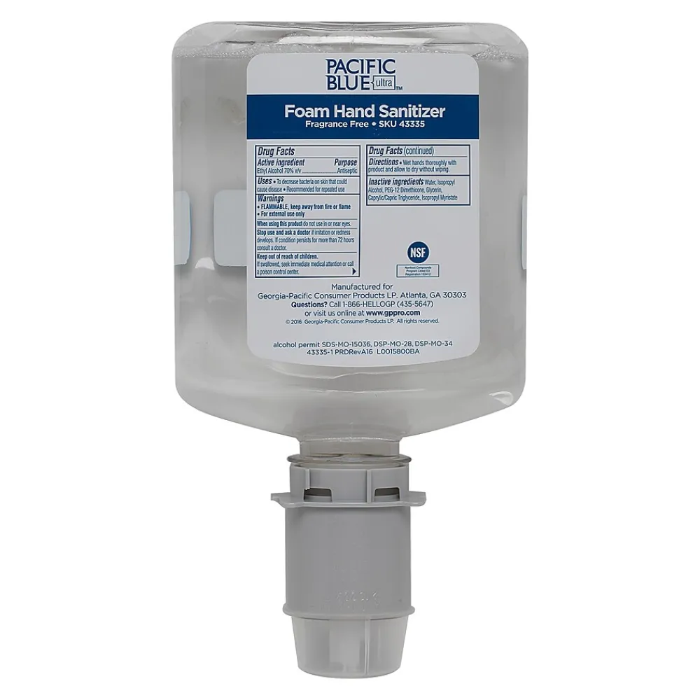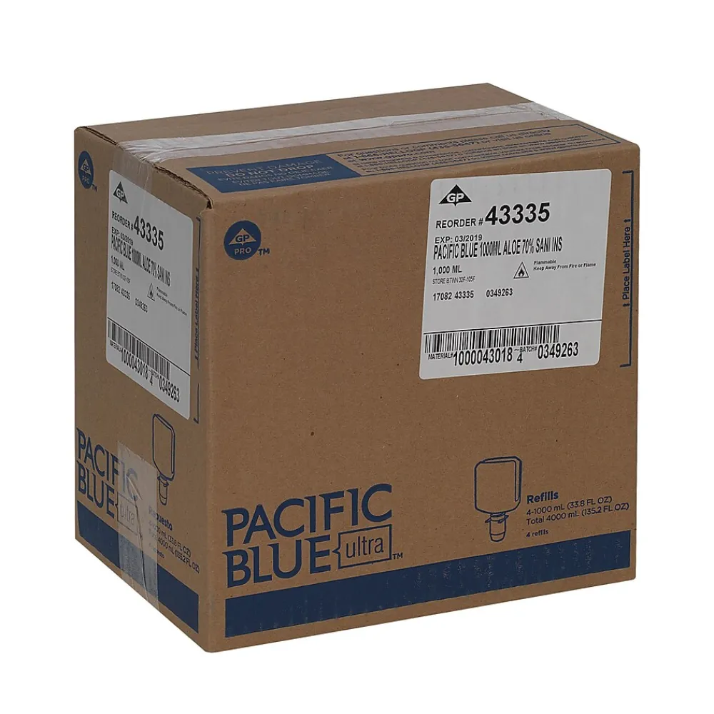 Refill manual or automatic sanitizer dispensers with these replacement bottles of hand cleanser. The fragrance-free formula cleans and sanitizes skin without the use of water, and the liquid cleanser is infused with moisturizers to leave hands feeling soft. These 1000-milliliter bottles of pH-balanced Pacific Blue Ultra hand sanitizer reduce the need for frequent replacement in a busy commercial, retail or industrial setting.