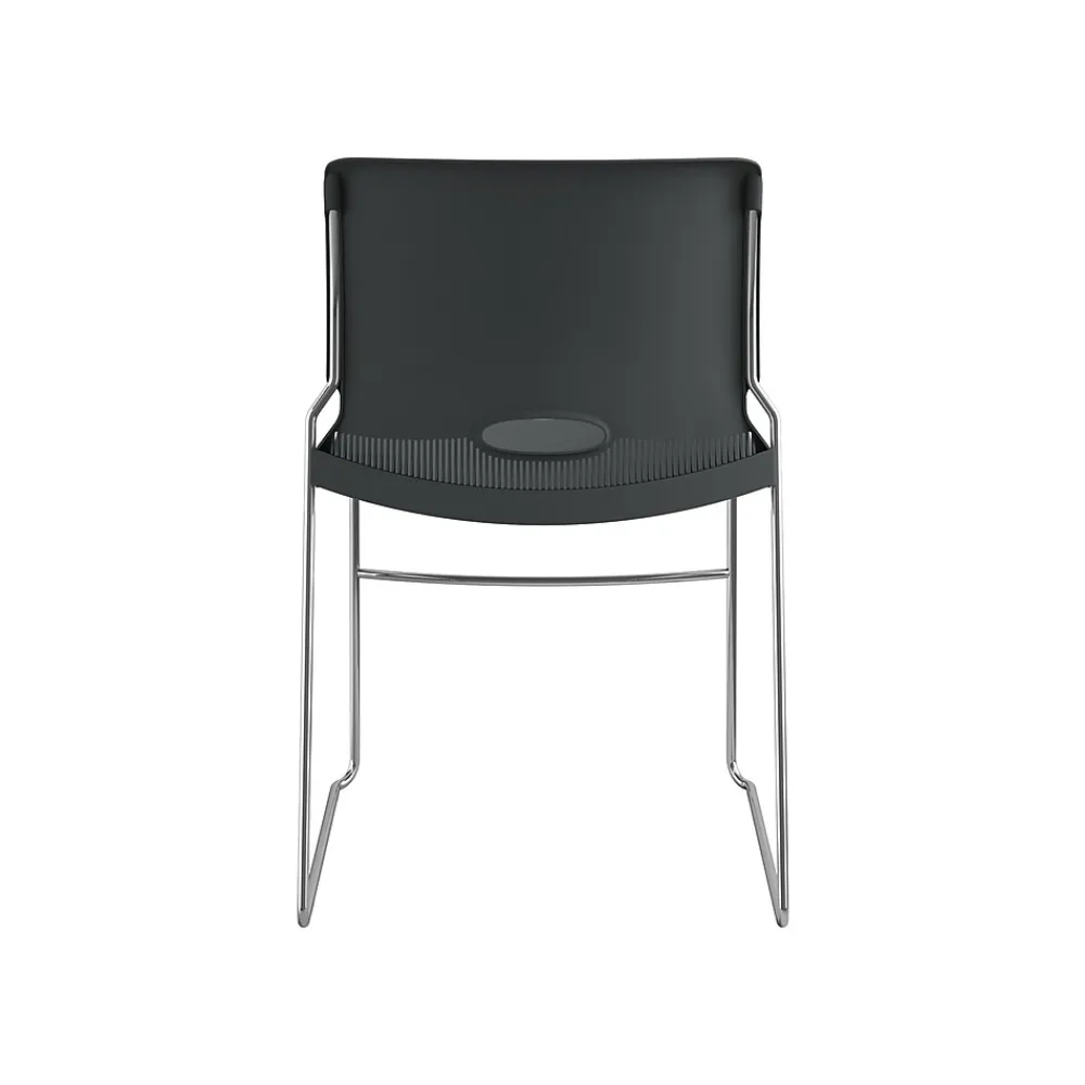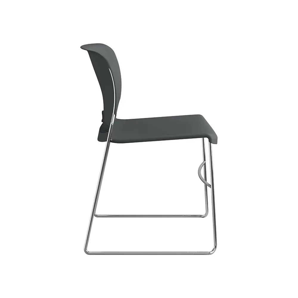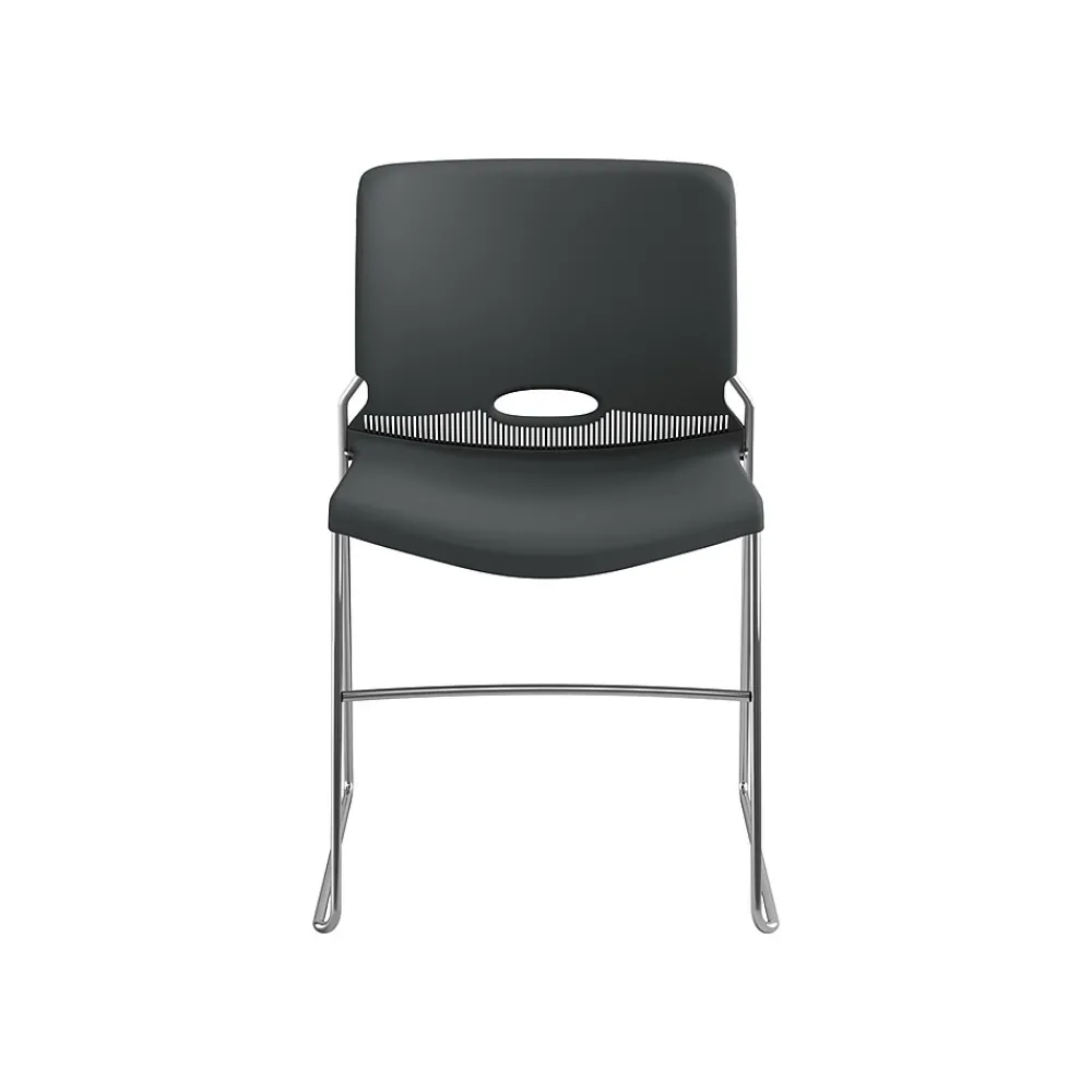Provide sturdy, comfortable seating for employees, trainees, or seminar guests with these high-density stacking chairs. Contoured backrests offer lumbar support, and integrated handles make them easy to carry. With solid steel rod frames and a 300-pound weight capacity, this 4-pack of HON Olson stackable chairs ensures stability and long-lasting quality.