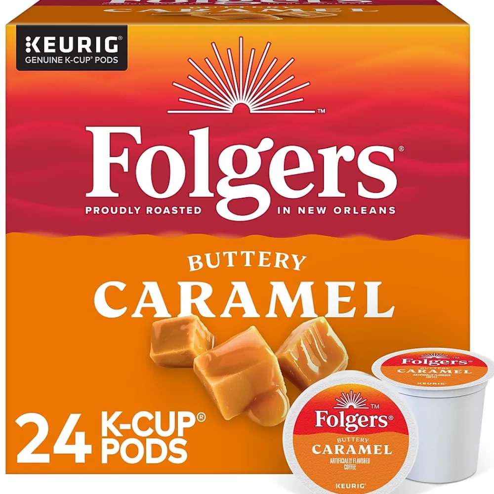 Reward your hard work with a delicious hot beverage when you use these Caramel Drizzle coffee pods. The medium-roast beans offer full-bodied flavor, while the creamy, buttery taste adds a gourmet finishing touch to every cup. This 24-count pack of Keurig K-Cup coffee pods lets you brew single cups, making them ideal for use in a break room, kitchen, or reception area.