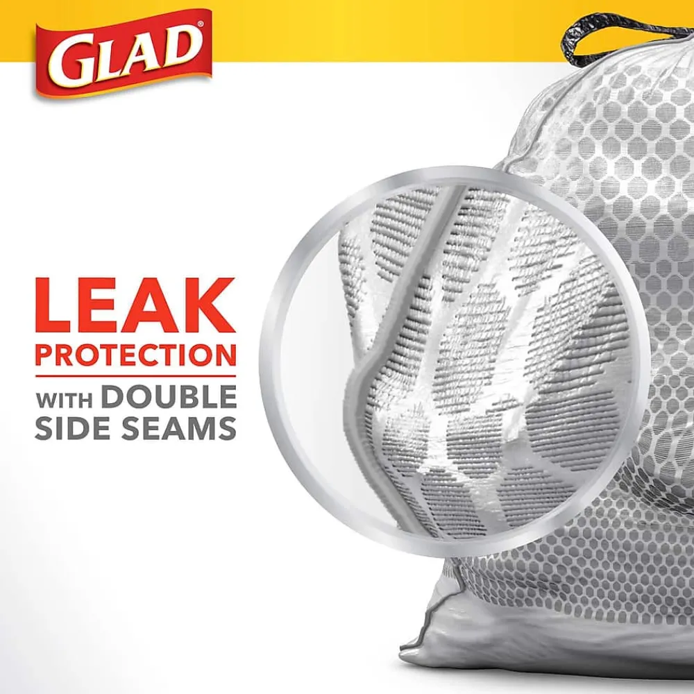- FORCEFLEX STRENGTH: Glad’s trusted ForceFlex technology allows the bag to stretch and expand over heavy loads with sharp edges, delivering durable strength; packaging may vary