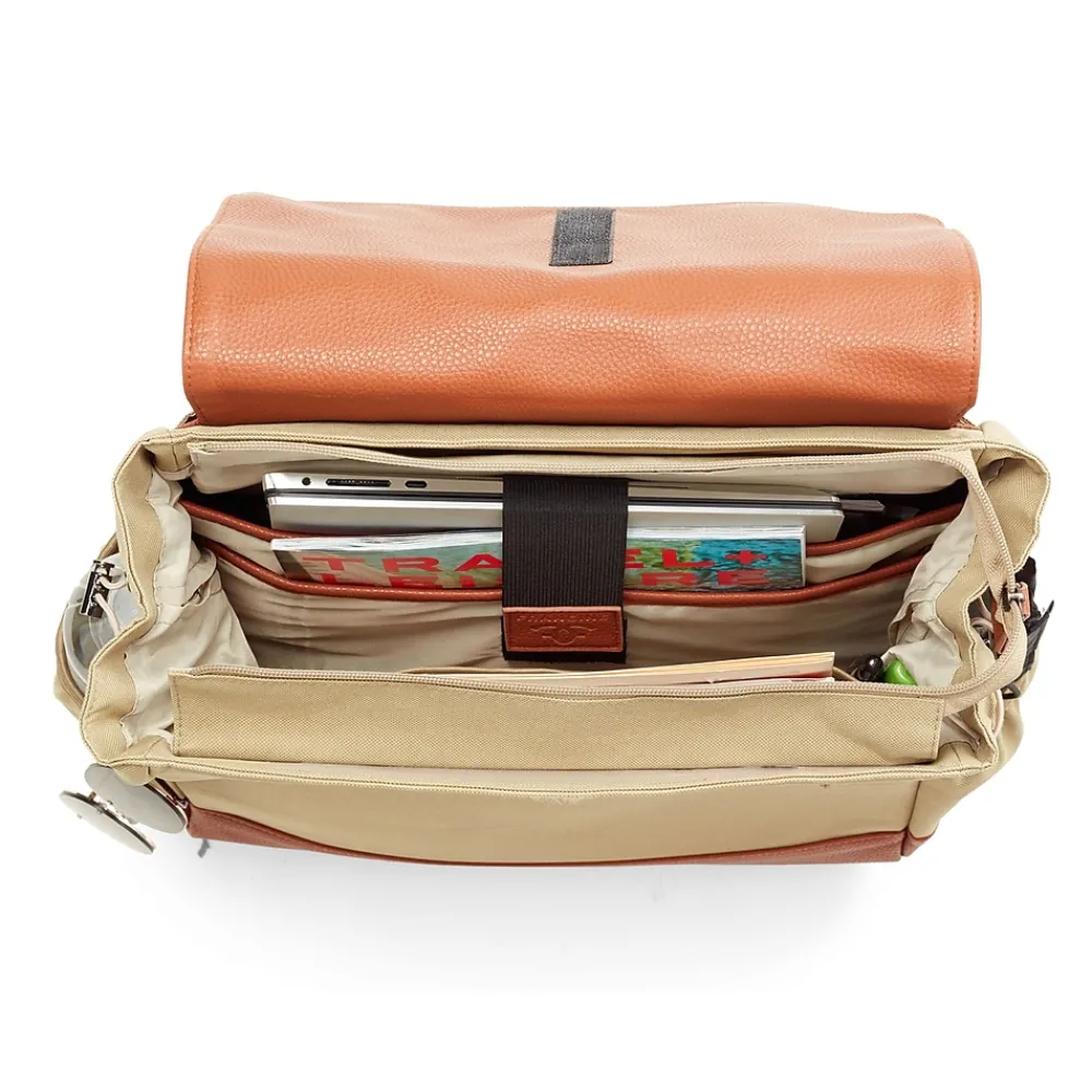 - Tan exterior w/ tan lining & silver hardware