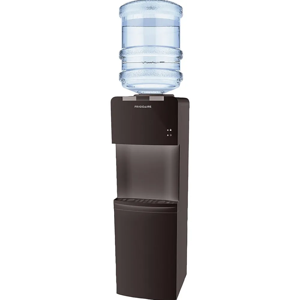 Make sure you drink enough water! This Black Frigidaire water cooler dispenses both cold and hot water and can hold the contents of 3 or 5 gallon bottles. With 100 watts of cooling power and 420 watts of heating power, your water will always be at just the right temperature. Don’t rely on a thermo-electric cooled unit—this water cooler is powered by a robust compressor cooler, making sure your water is always nice and cold. There is also an indicator displaying, cooling, heating and power activity. With its clean look, this water cooler would fit in any kitchen, office, or dorm.