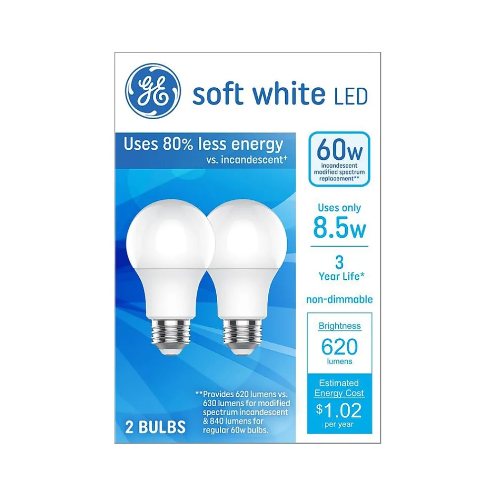 The GE Basic LED light bulb offers outstanding energy efficiency, long-lasting performance, and just-right brightness, all in one package. The bulb illuminates your home with warm, soft white light. Unlike CFL bulbs, this LED bulb features instant full brightness and is free of mercury. Great for frequently used fixtures: the LED’s long life and low energy use will help you save money on energy.