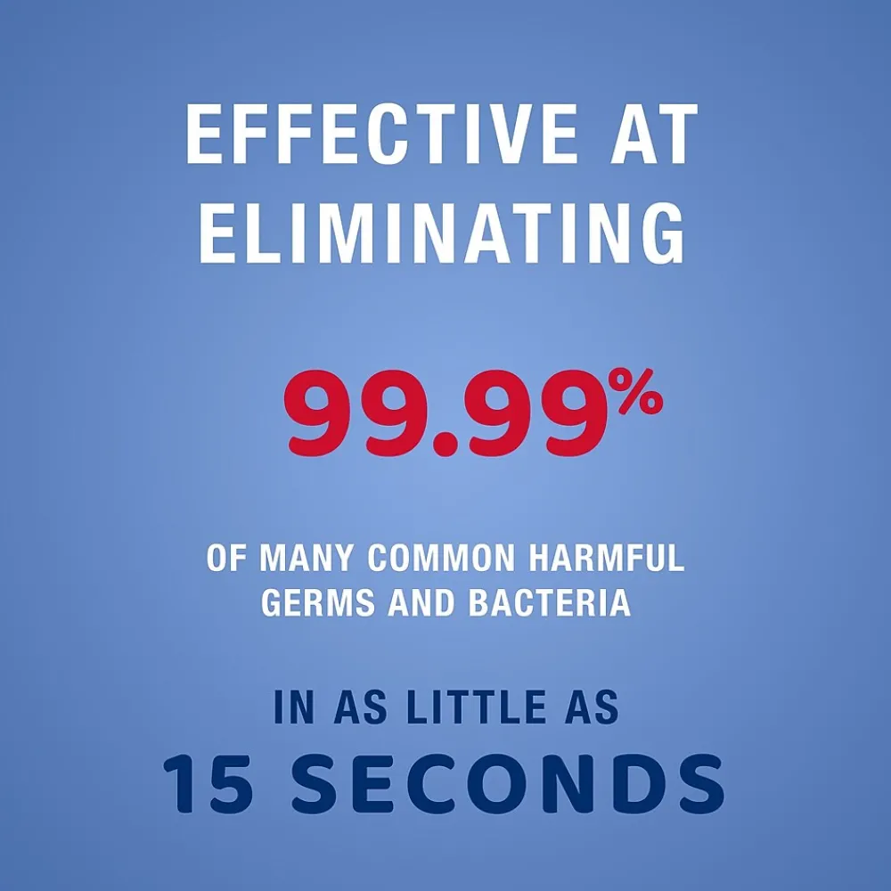 - Effective at eliminating 99.99% of many common harmful germs and bacteria in as little as 15 seconds*