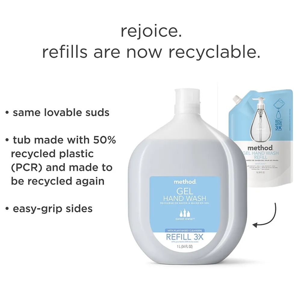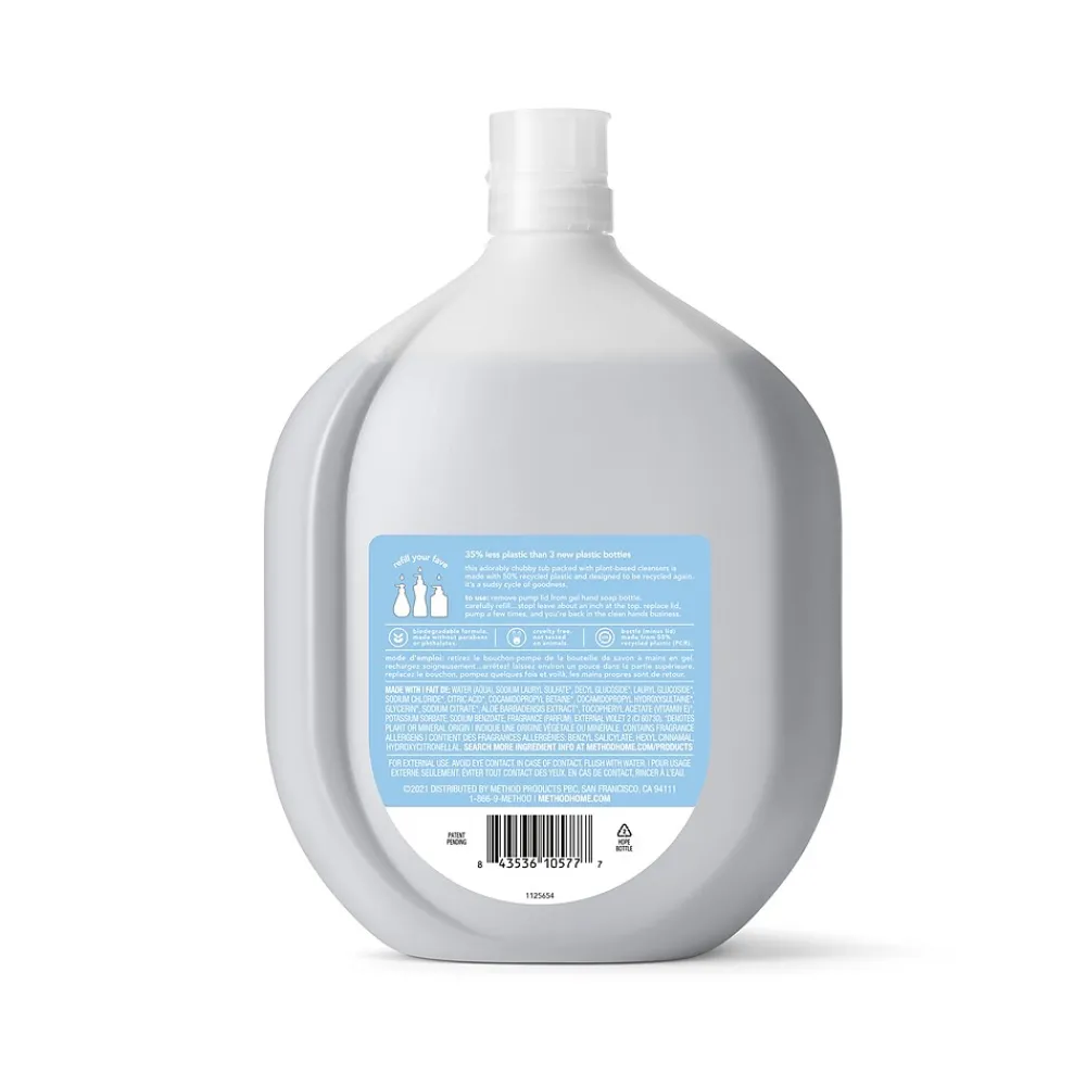 The Method hand soap refill is full of naturally derived gel hand wash to refill your bottle nearly three times. Because the only thing worse than dirty hands is employing jeans-wiping as an interim solution. This adorably cubby tub packed with plant-based grease-cutting power is made with 50% recycled plastic and designed to be recycled again. It’s a sudsy cycle of goodness. Easy to use: remove the lid from your gel hand soap bottle, and carefully refill, leave about an inch at the top if you have a pump bottle. Replace the lid, pump a few times, and you’re back in dish business.