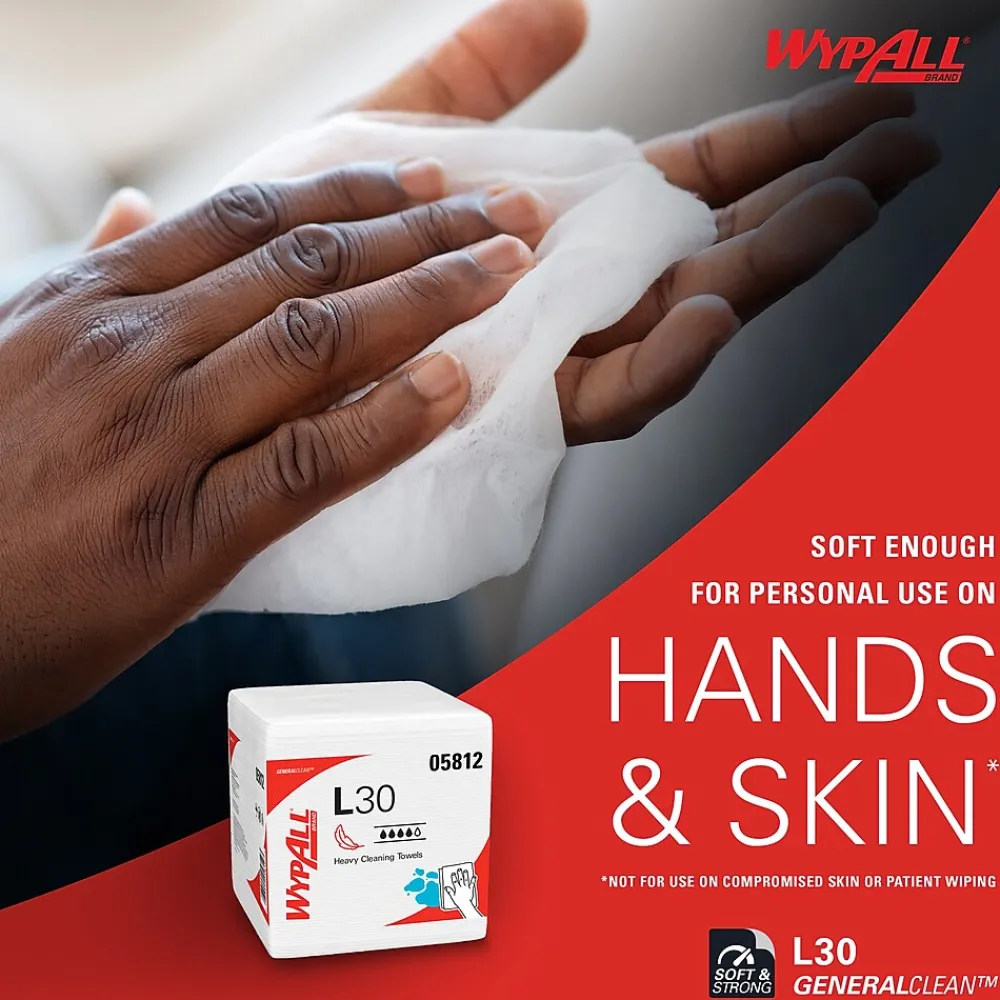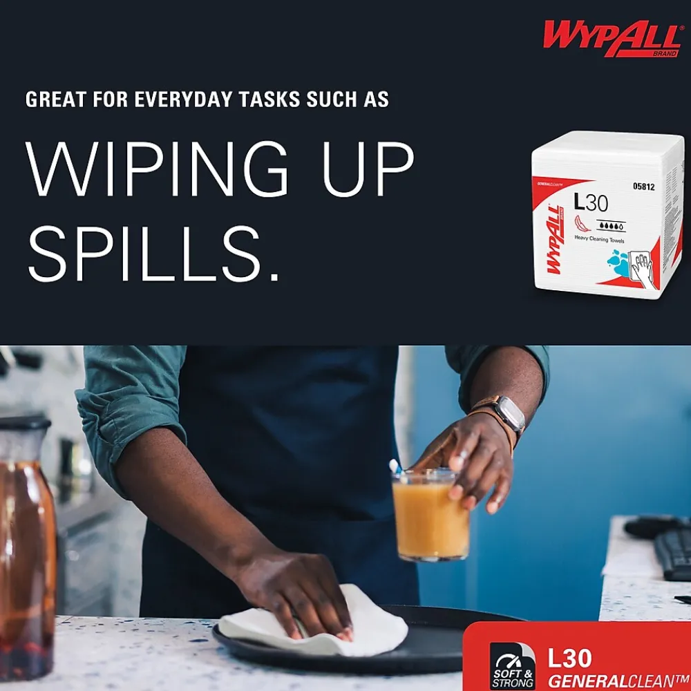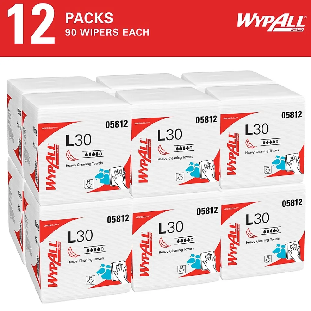 - 90 Sheets/Pack; 12 Packs of WypAll® GeneralClean™ L30 Heavy Duty Cleaning Towels/Case; 1,080 Sheets/Case; White; Quarterfold; Strong and Soft Towels