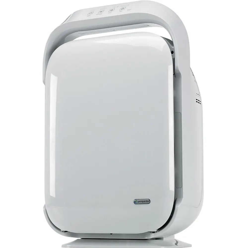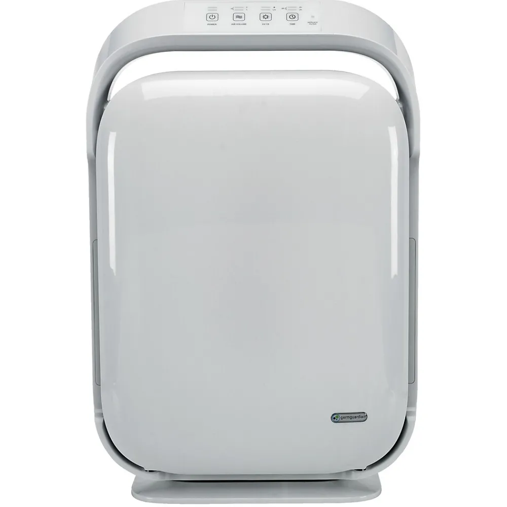 Allergens, germs and odors, beware! The Hi-Performance Air Purifier is ideal for allergy sufferers. A True HEPA filter relieves allergies by capturing 99.97% of dust and allergens down to .3 microns. A large activated granular carbon filter attacks smoke, cooking and pets odors along with harmful VOC’s emitted by common household products. UV-C light technology kills germs and mold spores. An optional ionizer can be turned on to boost allergen control. The purifier is ideal for rooms up to 378 sq. feet.CADR ratings are high with 244 (smoke); 310 (dust) and 346 (pollen).