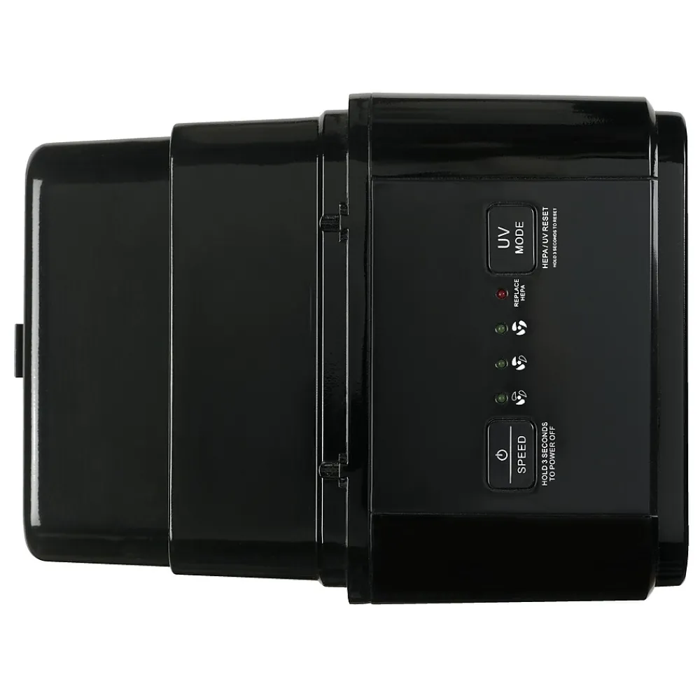 - UV-C light technology works with Titanium Dioxide to reduce airborne bacteria, viruses, germs and mold spores.