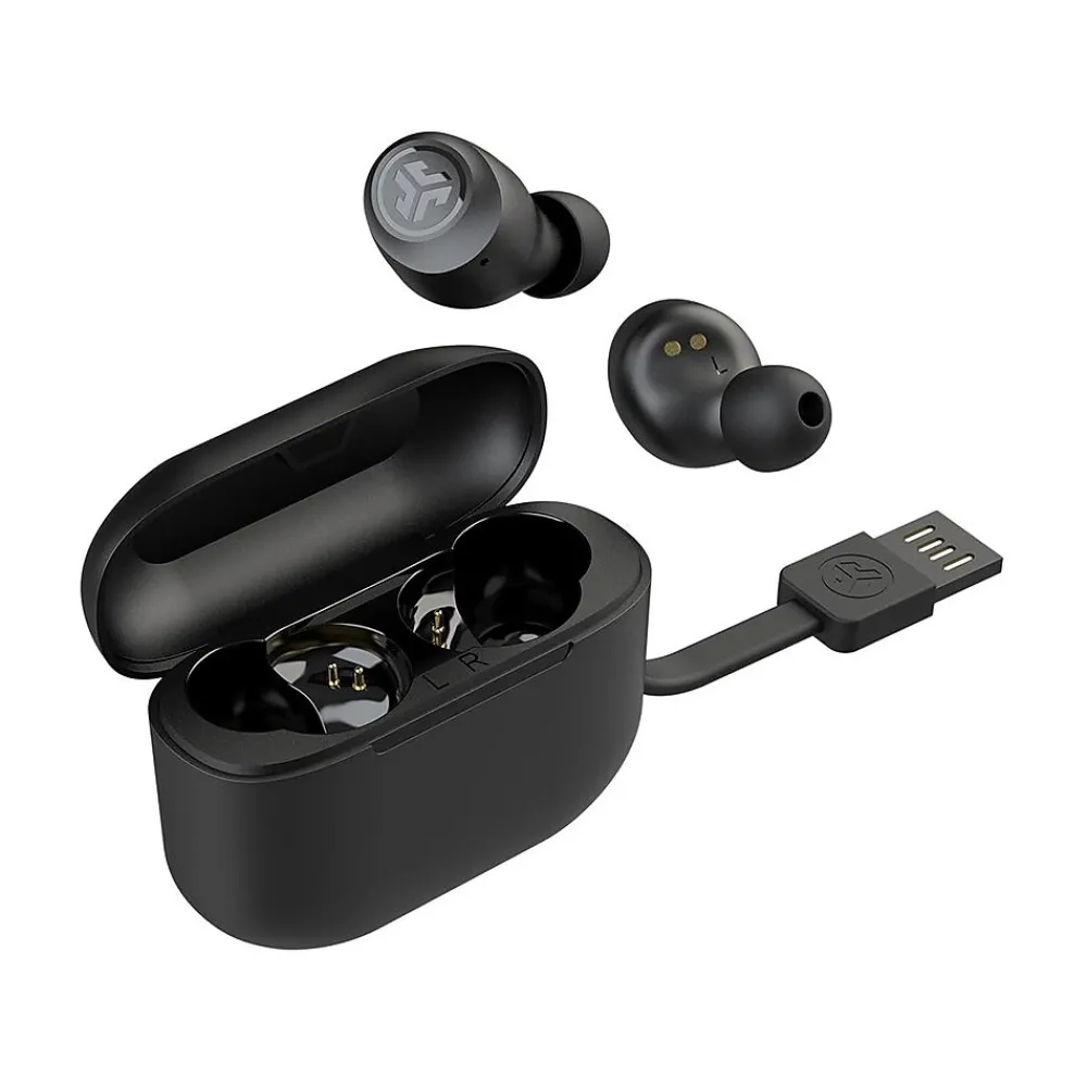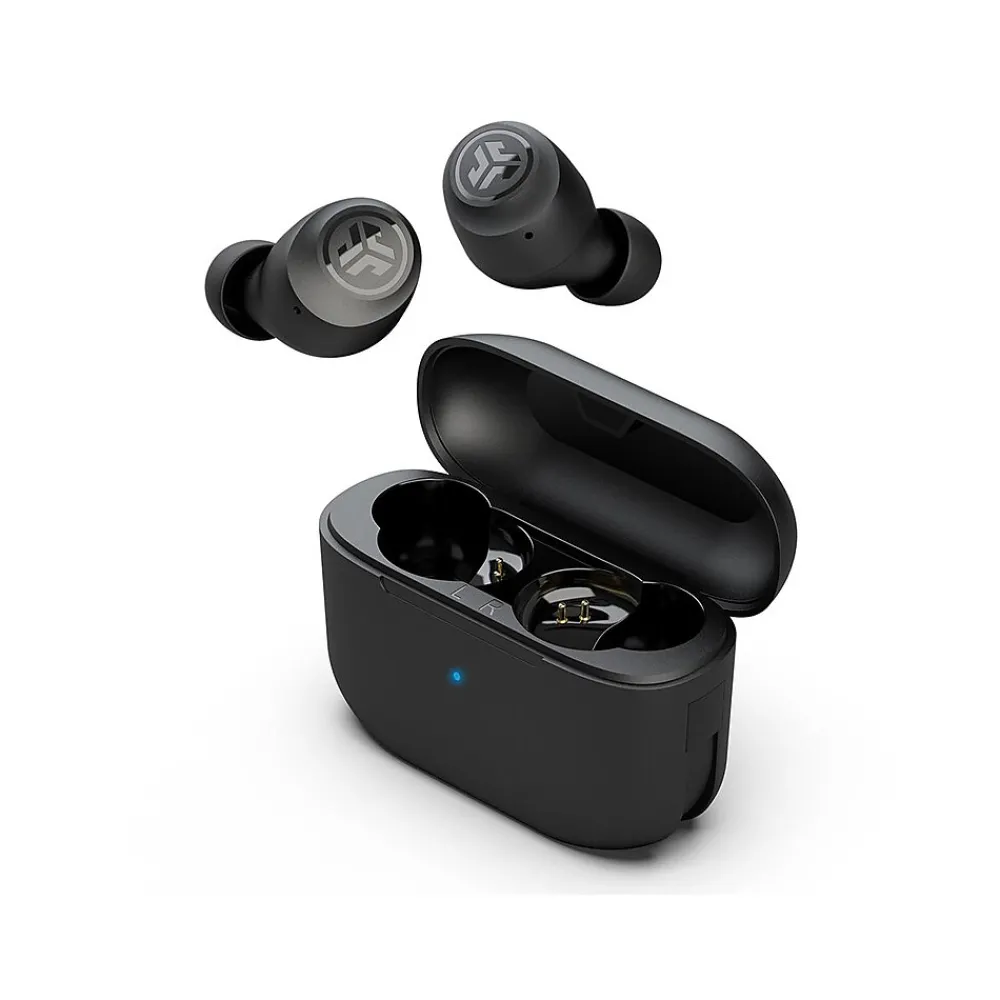 JLab Go Air POP earbuds are perfectly pocket-sized with a powerful punch. With a lot of hours of total playtime and a small fit, the slim case goes wherever you go. Pop it open to auto connect to your device to talk, take calls and enjoy life on the go.