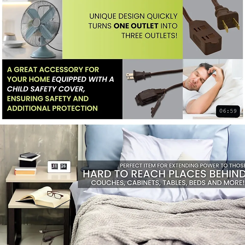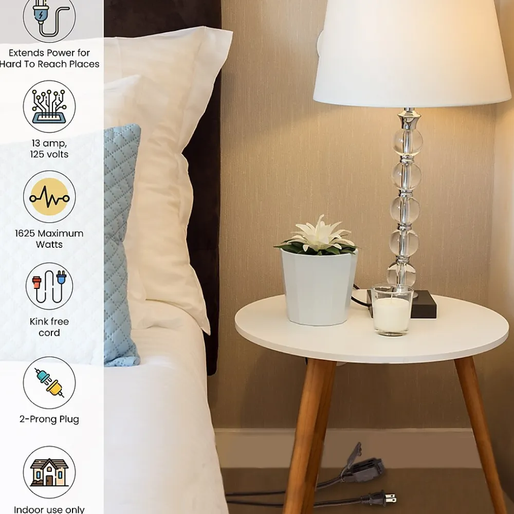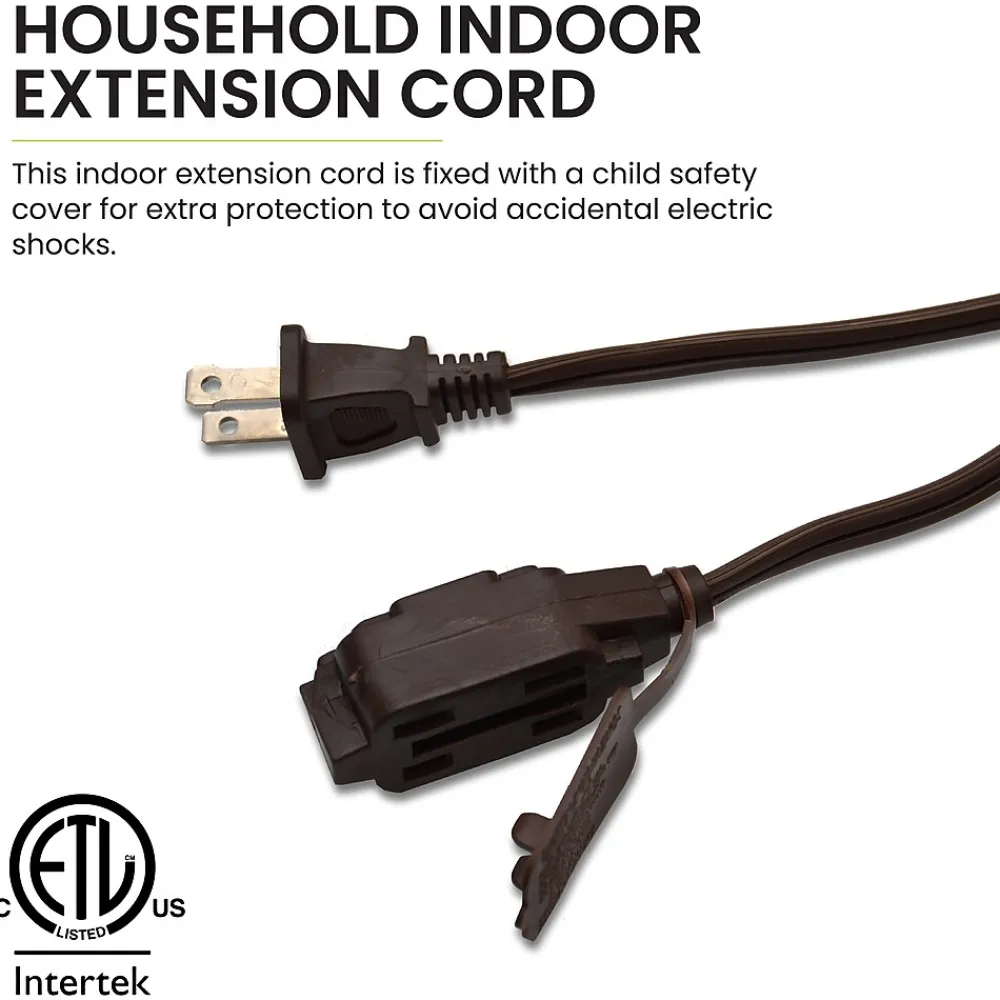 GoGreen’s 2-prong extension cord comes equipped with 3 outlets and is rated for indoor use only. Perfect for devices such as lamps, phone chargers, fans, heaters, and many other electronics. Rated at 125 Volts, the 2-prong cord can be plugged into a standard 3-prong 120V AC outlet. The 16 gauge kink-free cord is safe and reliable, providing superb insulation. Each extension cord is fixed with a safety cover for extra protection. There are 3 Extension Cords per order.