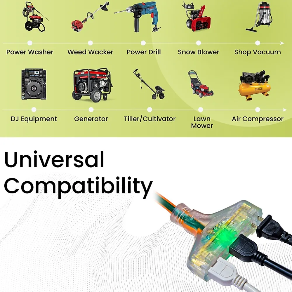 Update and improve the functionality of your home’s patio or garage with this GoGreen Power 3 outlet Heavy Duty Extension Cord, Lighted End. It will resist moisture, abrasion and prolonged exposure to sunlight for enhanced durability. This 3-outlet extension cord is ETL-certified. It offers the ability to turn one outlet into three outlets to help accommodate your power distribution needs. It’s ideal for use around your garage, your home and your work site. The plug illuminates to show when power is on to promote safe and convenient use.