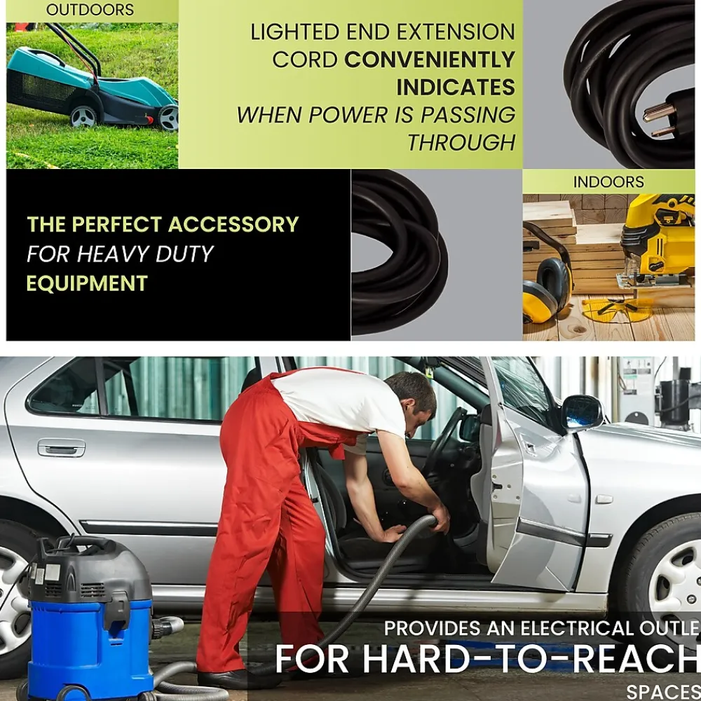 Increase your range with this GoGreen Power 14/3 Heavy Duty Extension Cord. It makes a smart addition to any collection of household supplies. This outdoor extension cord is extremely durable and stands up to the elements without issue. It resists moisture, abrasion and prolonged exposure to sunlight, making it dependable and long-lasting. Recommended for use with heavy-duty equipment and tools, the cord contains heavy-duty molded plugs.