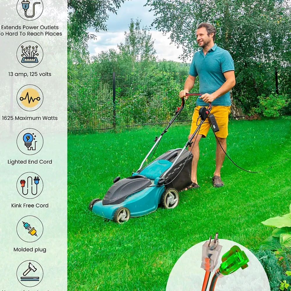 The GoGreen Power Heavy-Duty Extension Cord is ideal for multiple applications around your home’s exterior and garage. It resists moisture, abrasion and exposure to sunlight. The length of the outdoor extension cord allows you to cover a large area without the need for continuous stops to remove and replug. Use it to power your electric tools, lawn mower, to operate your generator and to provide lighting and music while entertaining. The cord is ETL listed and features a light on the end that shines when it’s in use.
