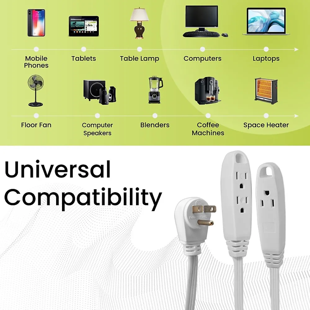 The GoGreen Power 8-foot 16/3 3-outlet extension cord is slim and reduces clutter. It quickly turns one outlet into three and is ideal for small home appliances and general household electronics.