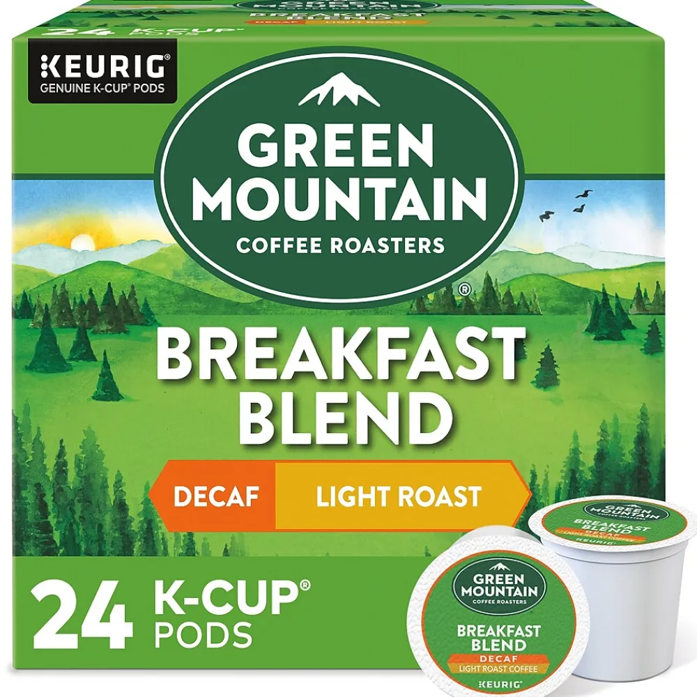 Brew a single cup of this decaffeinated coffee for a light roast option with a sweet, nutty flavor. Each pod works flawlessly with compatible Keurig brewers for simple setup. With no loose coffee or filters to worry about, brewing an individual cup of coffee is easy and convenient with these Green Mountain decaffeinated Keurig K-Cups. An eye-opening decaf as delightful as the dawn itself. Clean and bright, with balanced sweetness, nutty flavor, and a silky mouthfeel.