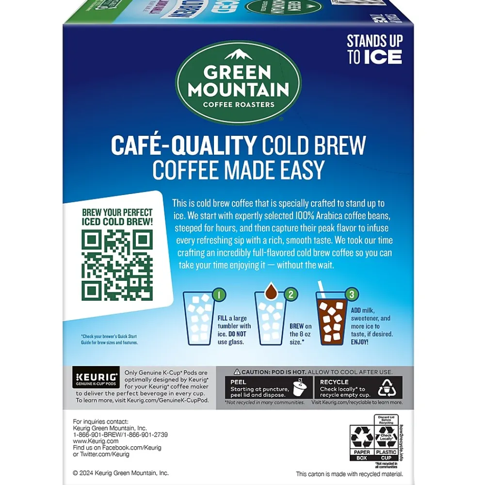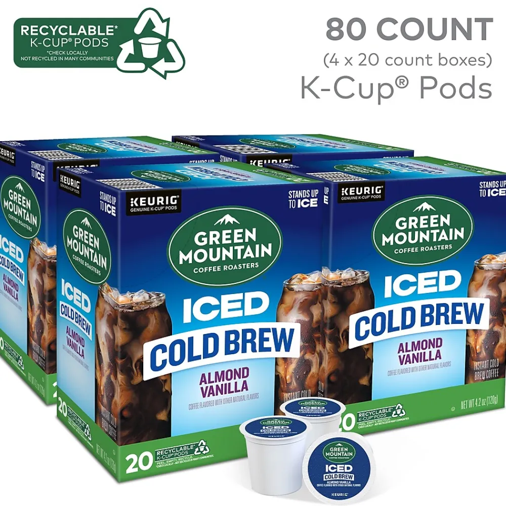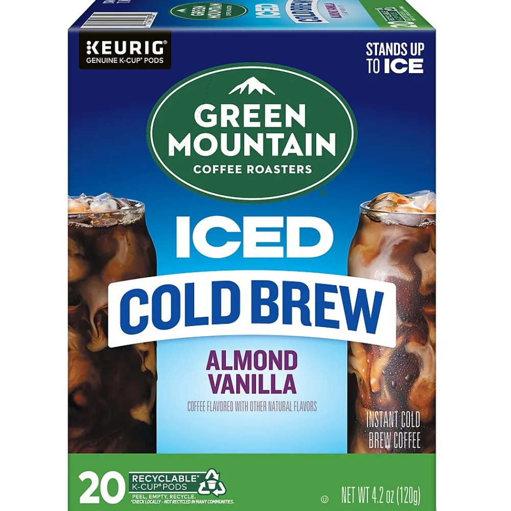This is cafe-quality cold brew coffee made easy. Green Mountain Coffee Roasters starts with expertly selected 100% arabica coffee beans, steeped for hours, and then captures their peak flavor to infuse every refreshing sip with a rich, smooth taste. The Almond Vanilla Iced Cold Brew coffee is a wonderfully flavorful representation of this remarkable process. Every cup is refreshingly smooth and nutty, with pronounced flavors of buttery caramel and vanilla. Every Green Mountain Coffee Roasters K-Cup pod brews a deliciously great-tasting cup of coffee, every time. That’s because every cup of Green Mountain Coffee Roasters is packed with goodness, reflecting the brand’s commitment to 100% responsibly sourced coffee. This Iced Cold Brew coffee K-Cup pod is compatible with all Keurig single-serve coffee makers. Simple. Delicious. And recyclable.