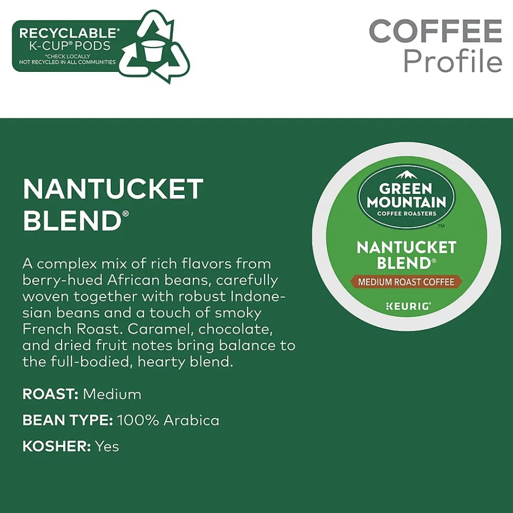 - Medium roast coffee with Nantucket blend flavor