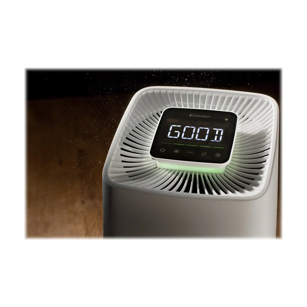 - GreenTech Connect mobile app allows you to set purification levels, activate Night Mode, or get up-to-date information, such as current settings, air quality reading, room temperature and humidity, component lifetime, and more