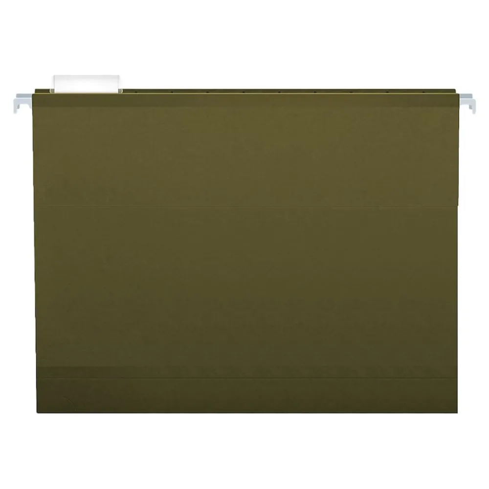 Utilize these file folders that expand to accommodate up to 800 sheets of paper to maximize document storage. These 4-inch folders are made from post-consumer materials and are edged with polylaminate strips for durability. These standard-green Pendaflex hanging file folders come with an interior InfoPocket to store small items along with documents.