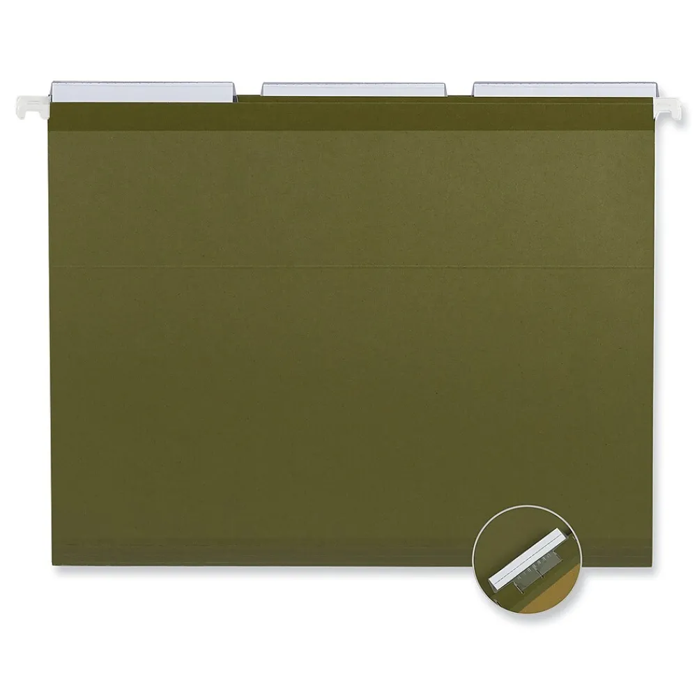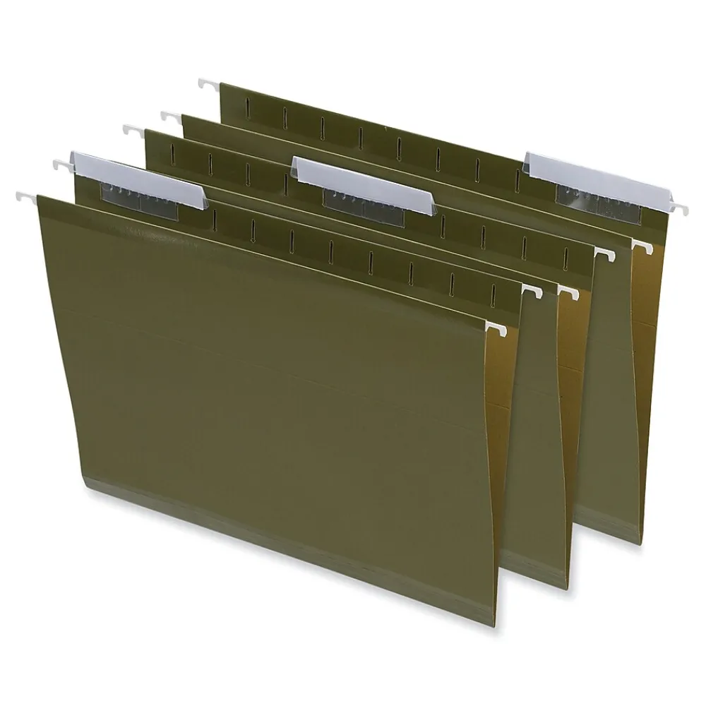 Hanging File Folders|Universal Recycled Hanging File Folder, 1/3 Cut Tab, Letter Size, Standard Green, 25/Box (UNV24113)