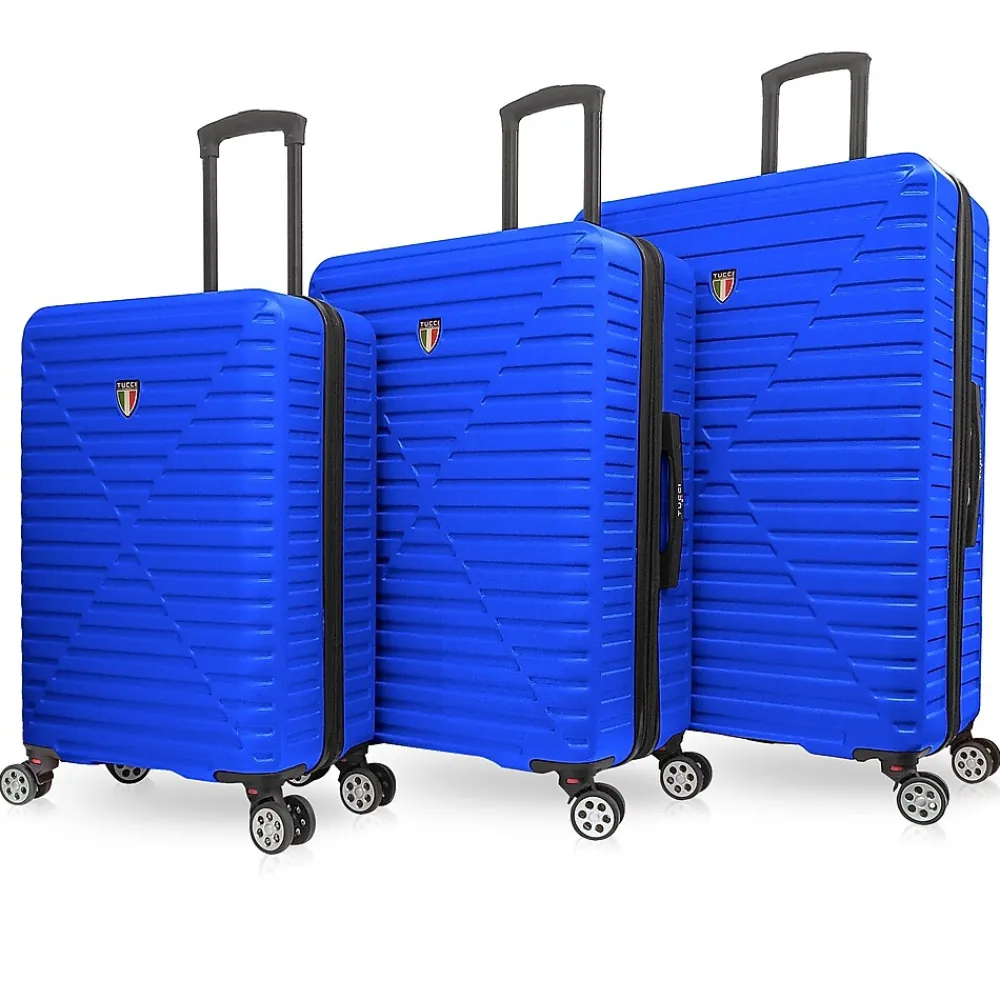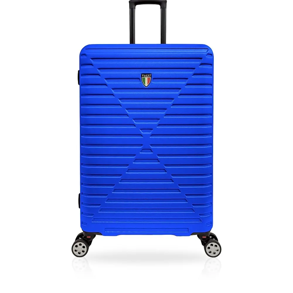 The Tucci Letizia 3-Piece Luggage Set in Blue (T0129-03PC-BLU) is a perfect blend of elegance and functionality, offering a sophisticated travel solution for any adventure. This set includes a carry-on, a medium-sized suitcase, and a large checked bag, all featuring a striking blue finish with a scratch-resistant hard shell for enhanced durability and a polished look.Made from lightweight yet durable ABS material, the Letizia set ensures flexibility and resilience to withstand the rigors of travel. Each piece includes a deluxe interior with Tucci’s signature lining, spacious compartments, and adjustable straps to keep your belongings organized. The 2″ expandable design offers up to 35% extra packing space, making it ideal for extended trips. Additionally, the set features a built-in combination lock for security, a glide-tech wheel system for smooth 360-degree movement, and soft jelly handle grips for added comfort.With its stylish design and practical features, the Tucci Letizia set combines luxury and convenience, making it an excellent choice for the modern traveler.