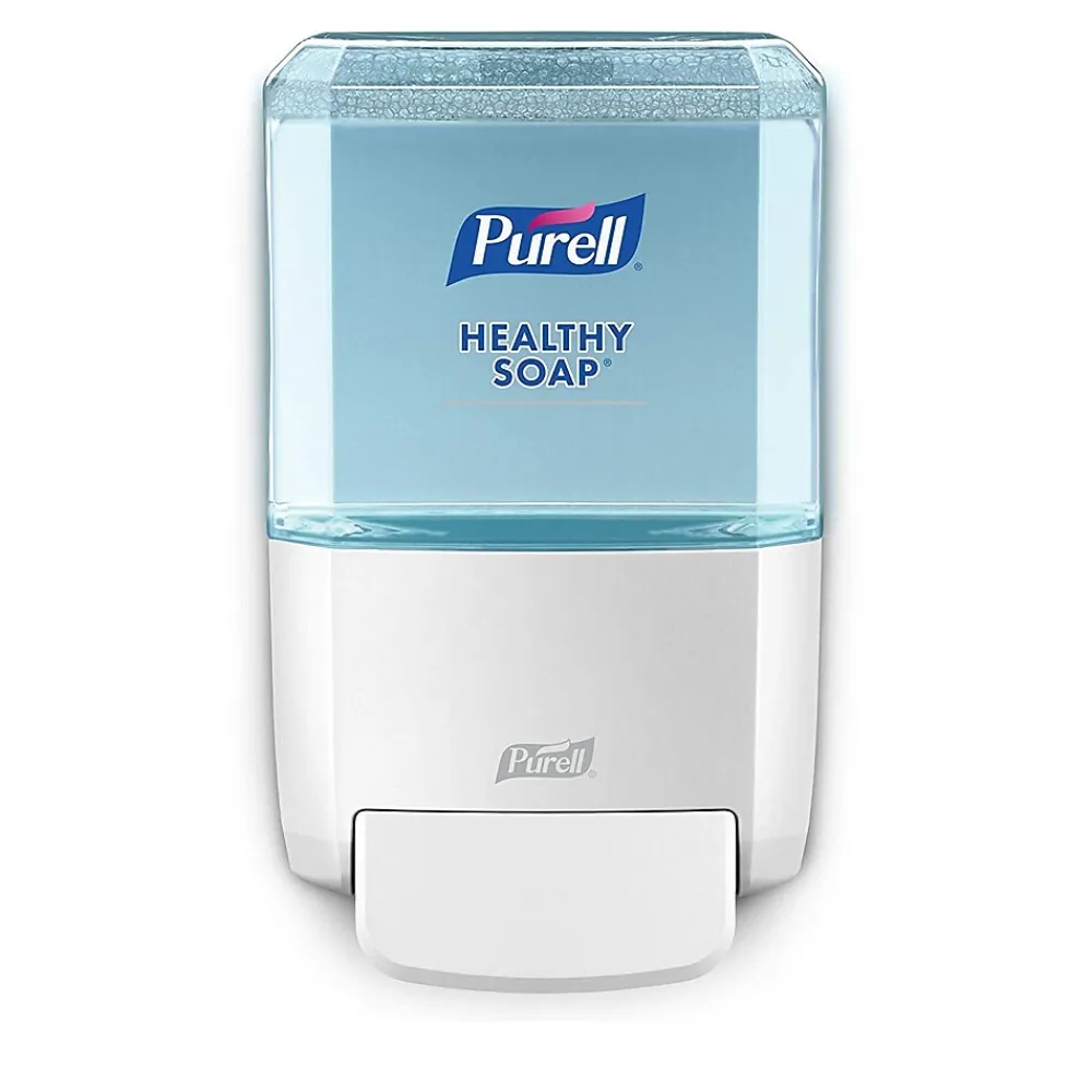 - Case Includes: 1 – PURELLES4 Manual Soap Dispenser in White, and adhesive mounting tape.