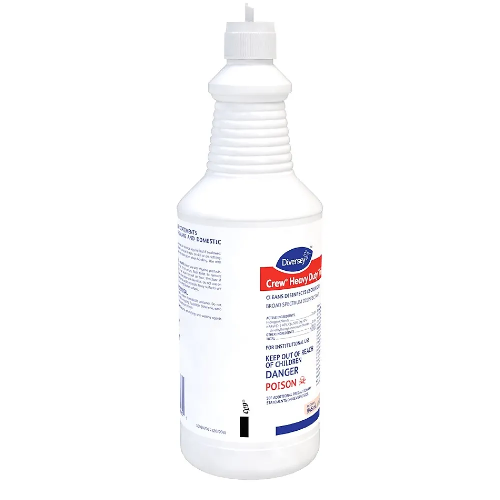 Erase stubborn buildup of lime, uric acid, and other mineral deposits with this heavy duty toilet bowl cleaner. The uniform coating allows for quick and simple cleaning, while the special formula kills bacteria, removes rust stains, and neutralizes odors. This Crew heavy duty toilet bowl cleaner has a convenient handle for easy pouring and comes in a mint scent, providing a clean, fresh smell.