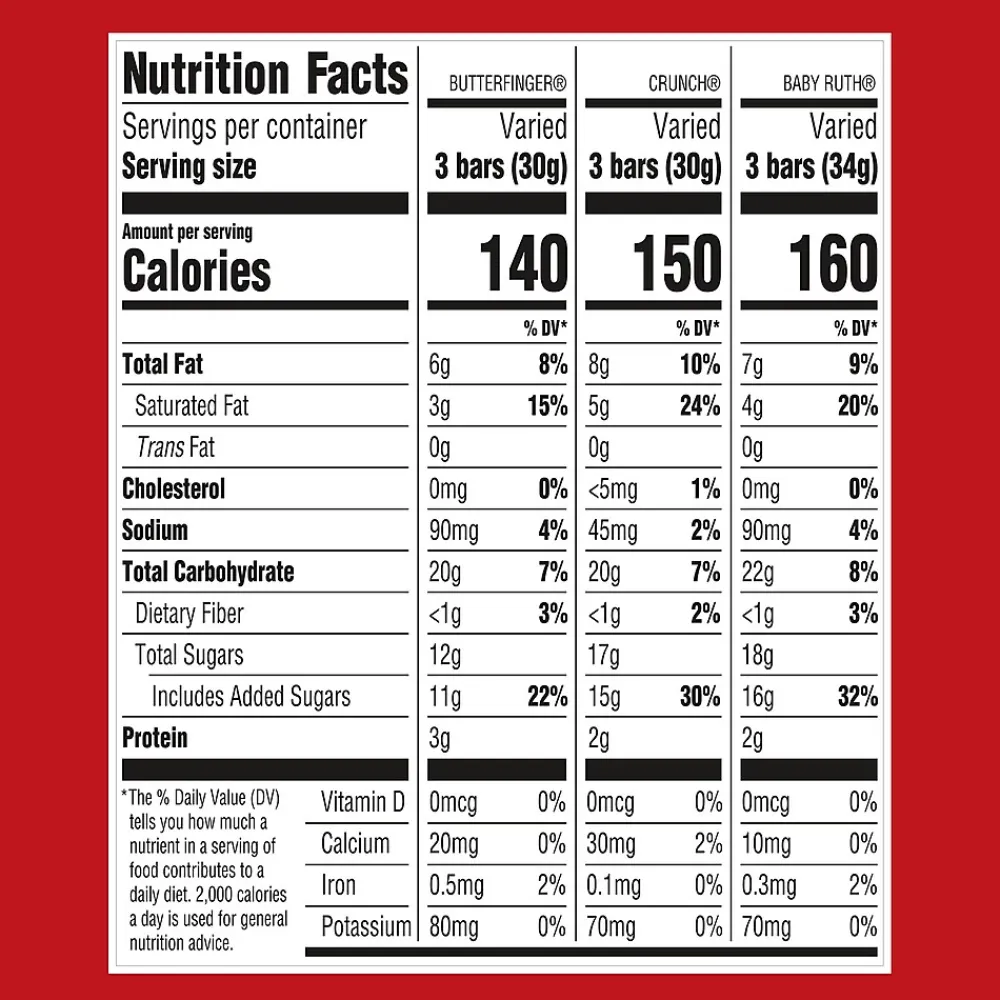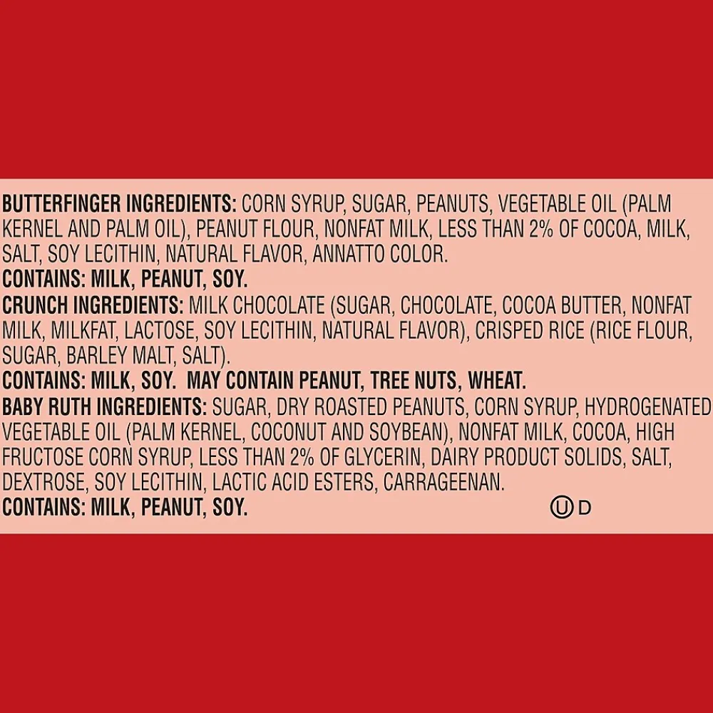 - This assortment includes Kit Kat, Reese’s peanut butter cups, Hershey’s milk chocolate candy bars, York peppermint patties, Almond Joy, Butterfinger, Nestle Crunch, Baby Ruth, 3 Musketeers, Milky Way, Twix and Snickers.