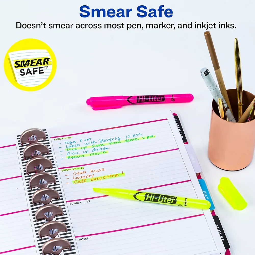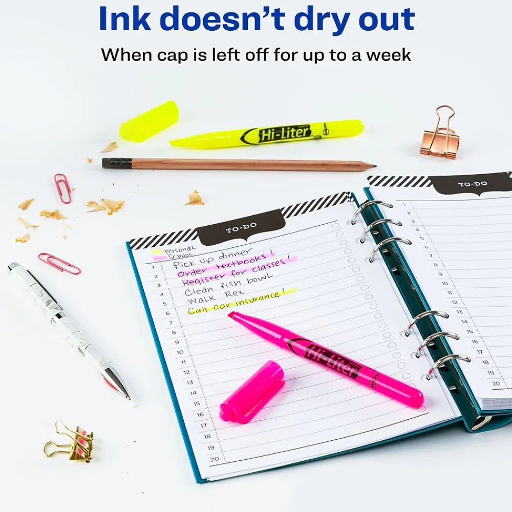 HI-LITER® Assorted desk style highlighter features chisel tip that does not fray or mush. Highlighter has durable plastic tip for smooth highlighting.