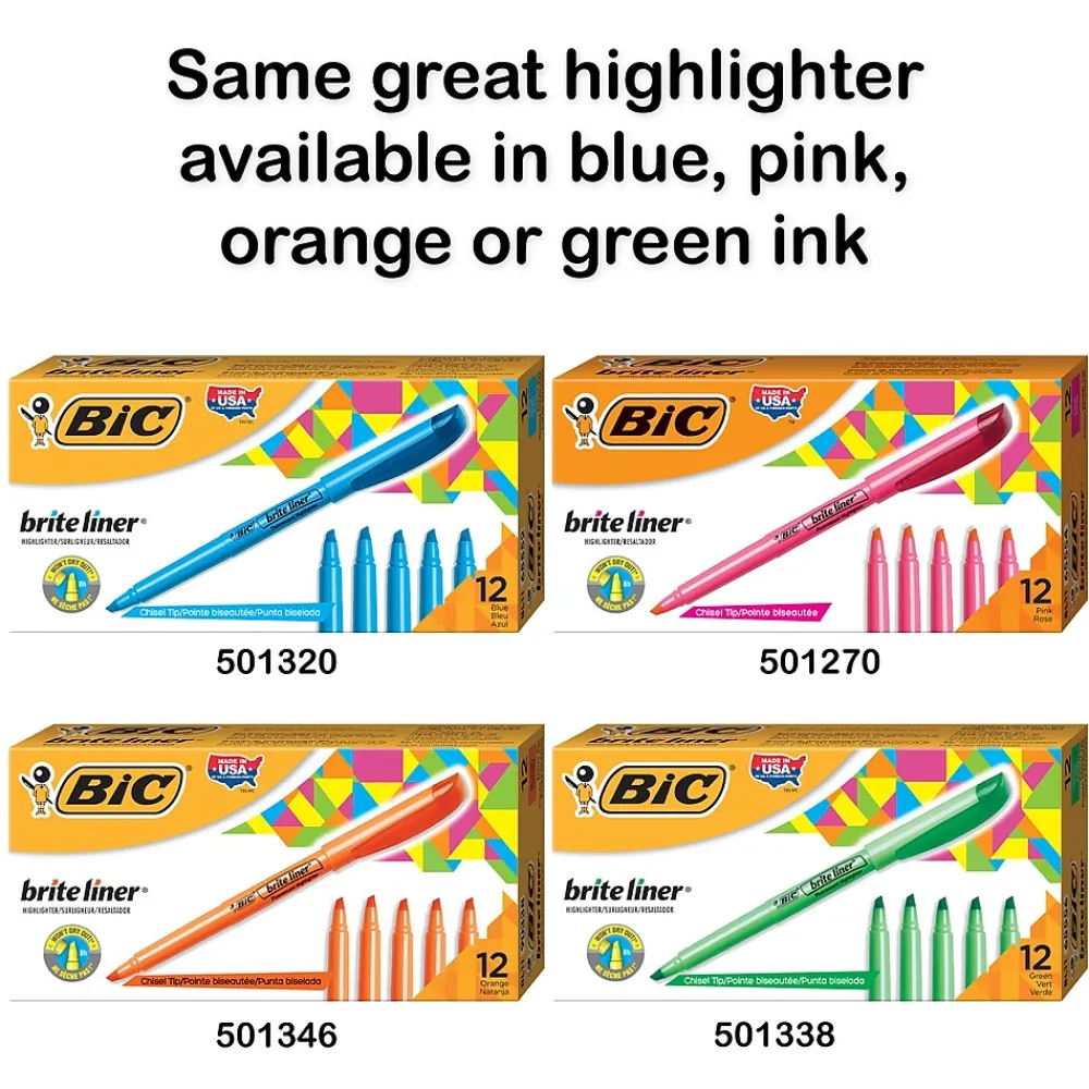 - One 12-count pack BIC Brite Liner Yellow Highlighter Markers