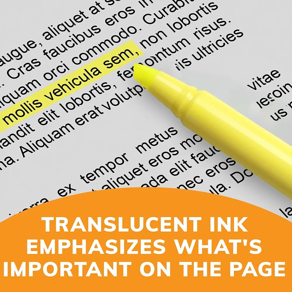- Highlighter set with translucent ink that emphasizes what’s important on the page without obscuring the highlighted text