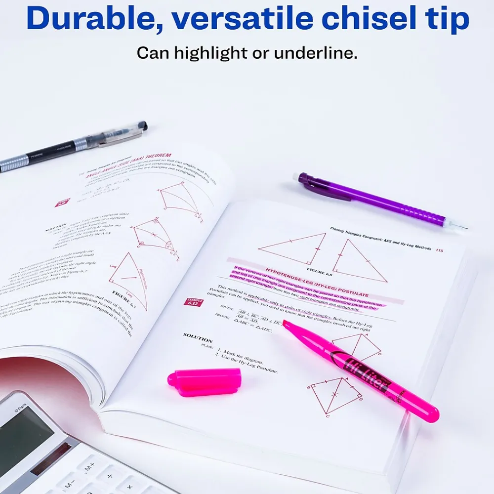 Help important information stand out on the page with these pen-style highlighters. The chisel tips let you underline text or mark entire passages, and the bright pink color captures your attention as you review notes and reading materials. With rounded barrels, these Avery Hi-Liter highlighters offer a comfortable grip.
