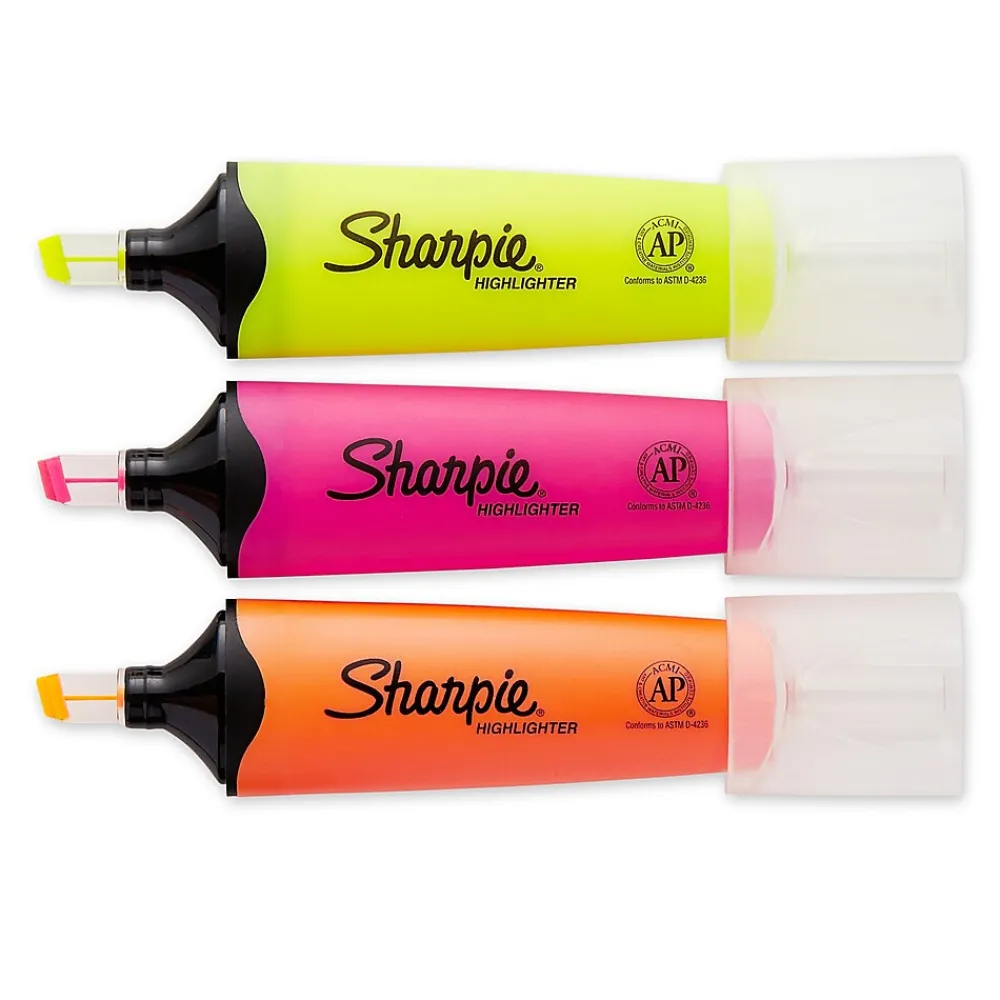 Always know when to stop with the Sharpie Clear View highlighter! A see-through tip allows you to keep your eyes locked on the page and precisely highlight. The blade-style tip lets you switch between both wide and narrow lines. Finally, ultra-vivid ink resists the smearing of many pen and marker inks.