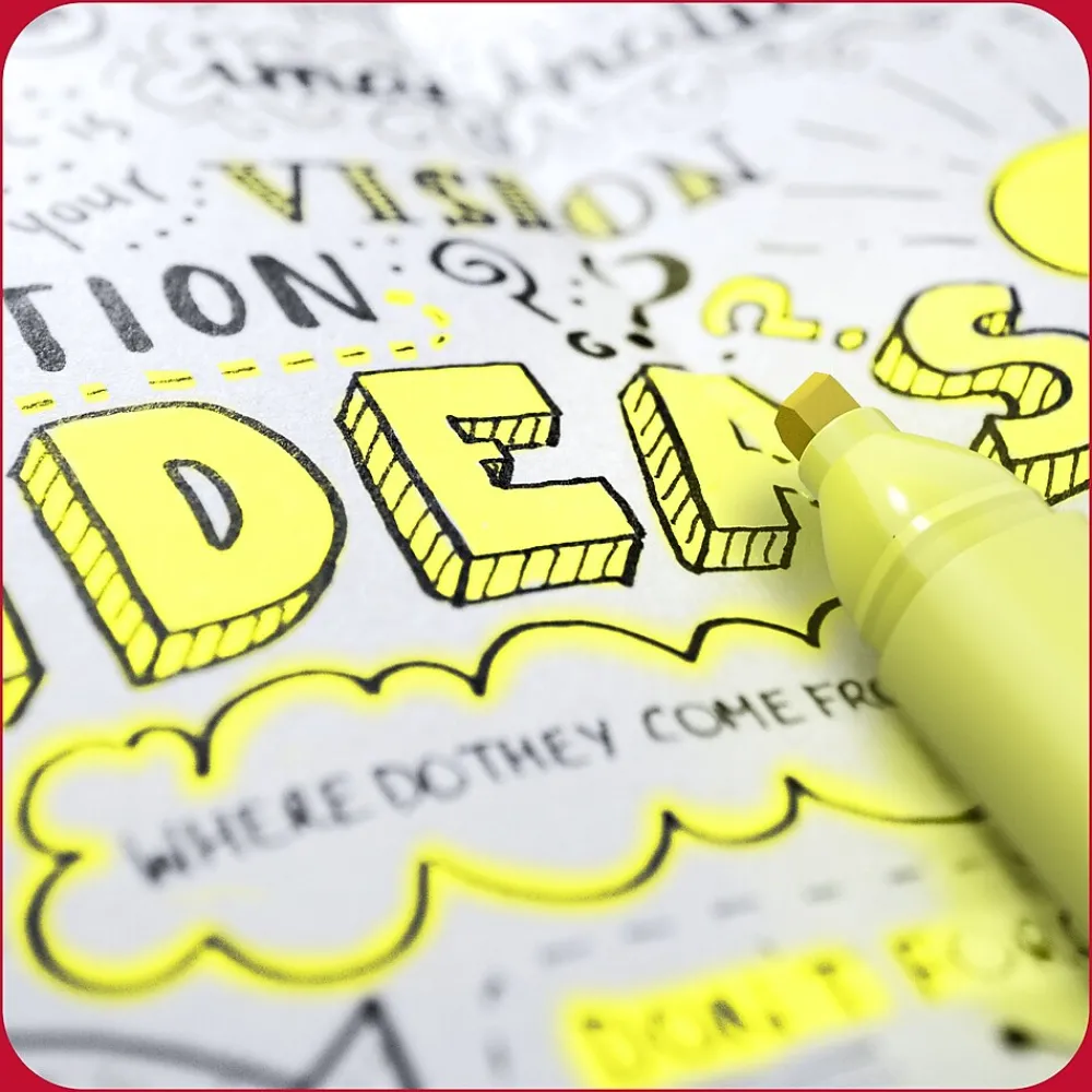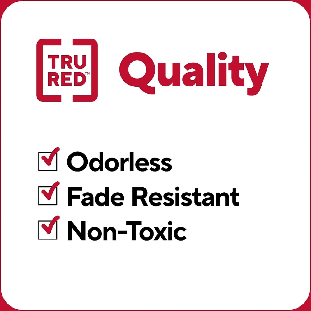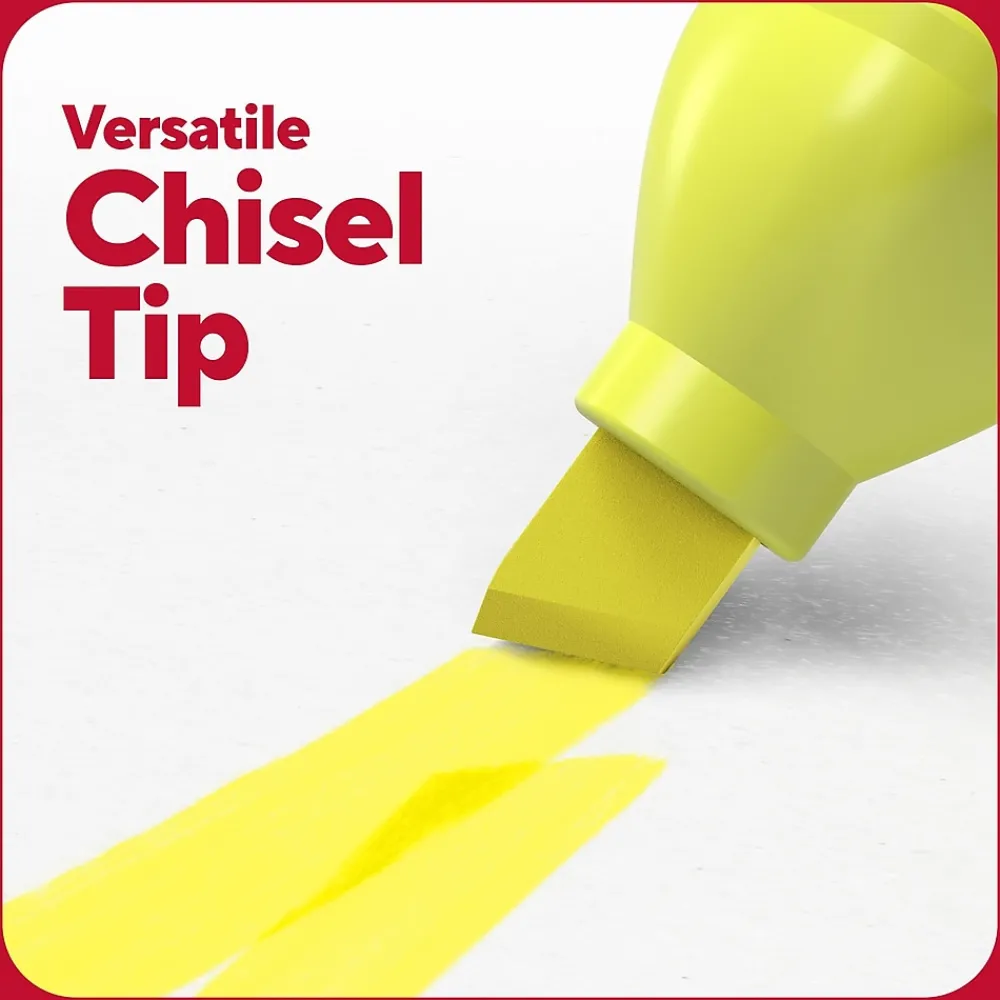 Highlight all the key information you want to remember in big swipes of bold color or create bright, thin lines for important notes with these versatile chisel-tip highlighters. The vibrant fade-resistant ink helps to keep any marked documents clear for studies or work. A large tank size and ink reservoir are ideal for your biggest projects with up to 300 meters of ink life per marker. Our Squircle™ barrel shape offers a comfortable grip and keeps these highlighters from rolling away while rubberized grips provide extra comfort. The odorless, non-toxic TRU RED tank highlighters 5-pack can be shared with a team or classroom ready to focus in any space.