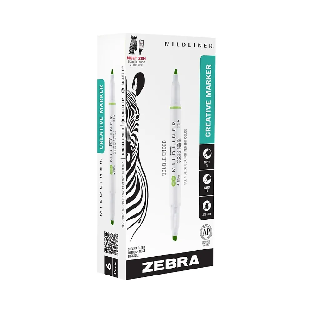 The Zebra MILDLINER double-ended highlighter helps you express your unique creativity with the convenience of two different tips combined in one pen. The mild color of the highlighter provides a soft hue on the page, allowing you to layer the water-resistant ink with ease. The ink doesn’t bleed through, so you needn’t worry about the next page in your sketchbook. Create personalized greeting cards, sketch out a new idea, or add dashes of precision color to any project. Add some beauty to your bullet journal or planner. Bring a touch of color to handmade cards, letters, and art presentations. Excellent for marking up important passages in texts. Complete your creative kit with additional Zebra artists’ instruments like Sarasa fineliners, Zensations technical and calligraphy pens (sold separately).